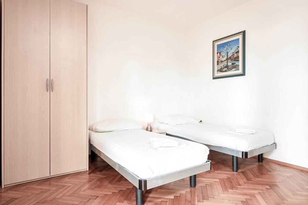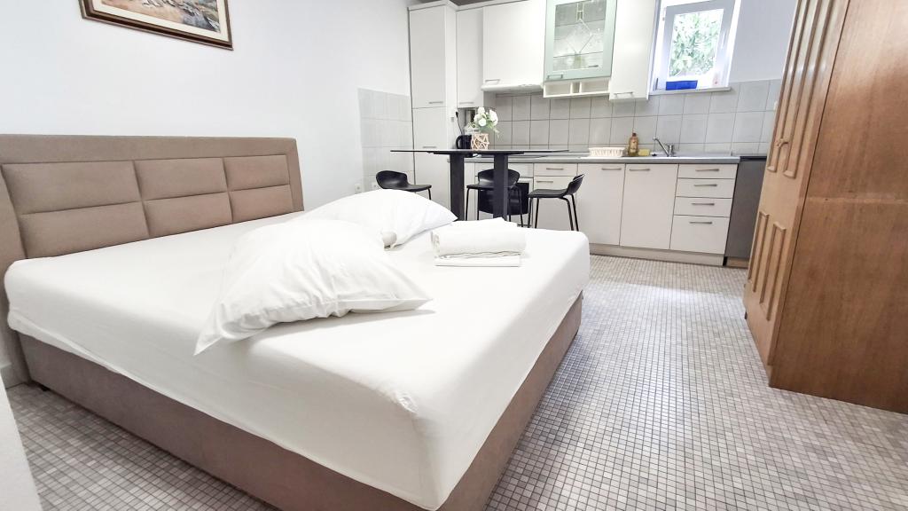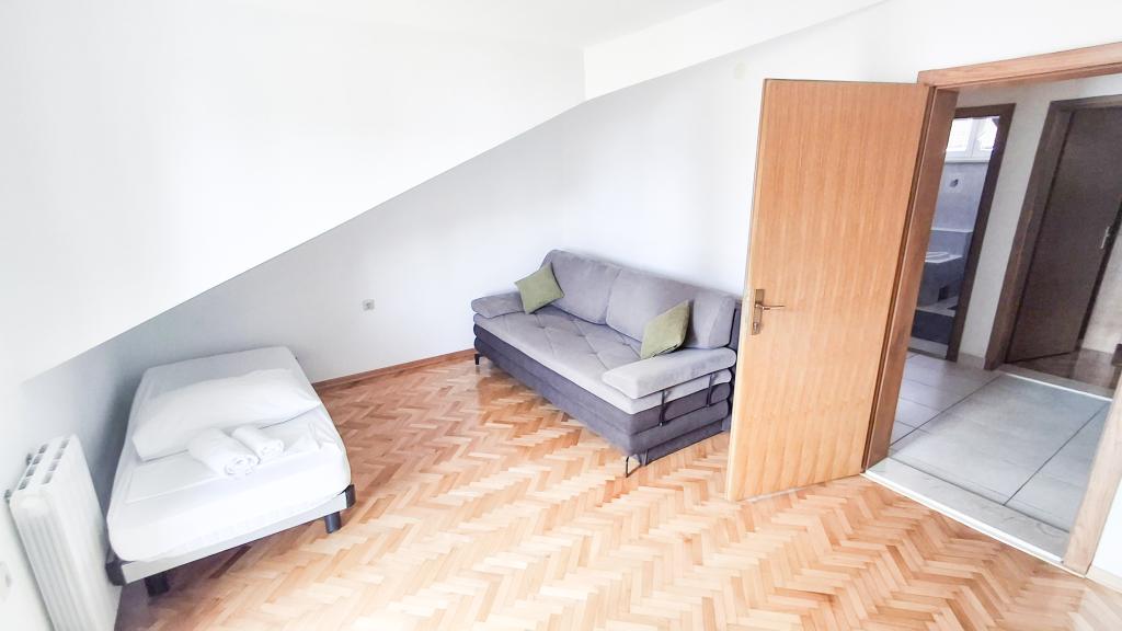 Het appartement heeft een goede ligging en een groot potentieel, maar moet goed worden gerenoveerd om de prijs van de accommodatie in het hoogseizoen, namelijk € 150,- per nacht, te rechtvaardigen! Allereerst moet u investeren in interne geluidsisolatie, omdat het geluid tussen de appartementen ondraaglijk is. Meestal zorgt het lopen door het appartement, het verplaatsen van de stoelen in de eetkamer, het per ongeluk vallen van iets op de grond en dergelijke voor veel lawaai, dus een rustige vakantie kan in dit appartement niet worden verwacht. Het appartement is groot en ruim, maar voor zo'n hoge prijs is het echt slecht uitgerust. De airconditioner is luid en bevindt zich slechts in één kamer. De keuken is vervallen en slecht uitgerust. De badkamer is gemiddeld, niets bijzonders. Verder heeft het appartement slechts één slaapkamer, en de andere is eigenlijk een woon-/eetkamer waarin, in plaats van een bank, een aantal oncomfortabele bedden staan, waarvan de grootte voor een volwassene moeilijk om te keren is, laat staan om te krijgen. een goede nachtrust. Het enige positieve is de locatie, dicht bij het strand, maar dat is niet genoeg om de vraagprijs waard te maken. De gastheer is vriendelijk, maar hij had niet veel invloed op de klachten die bij hem werden ingediend over netheid en lawaai.