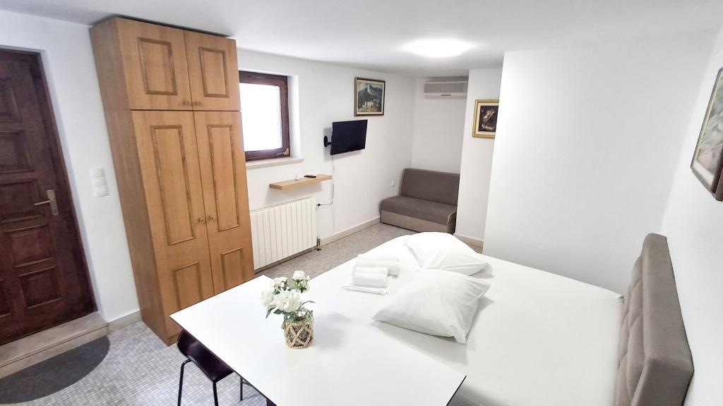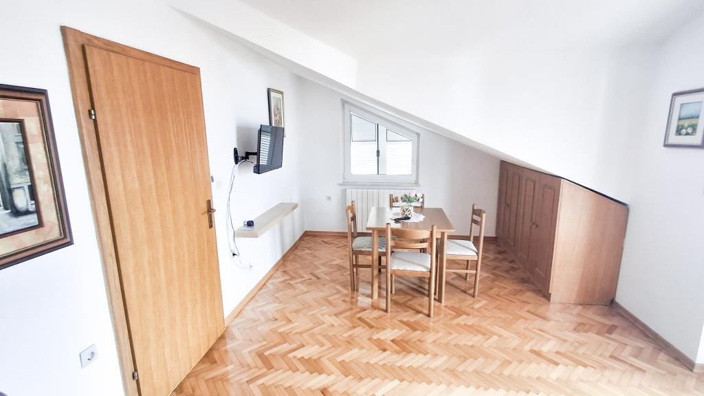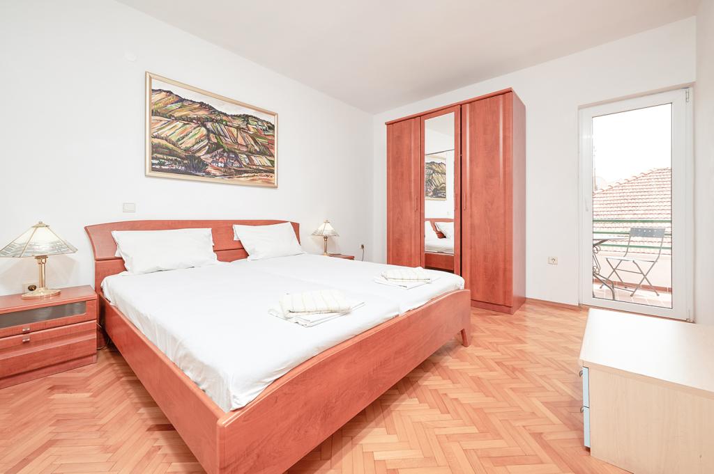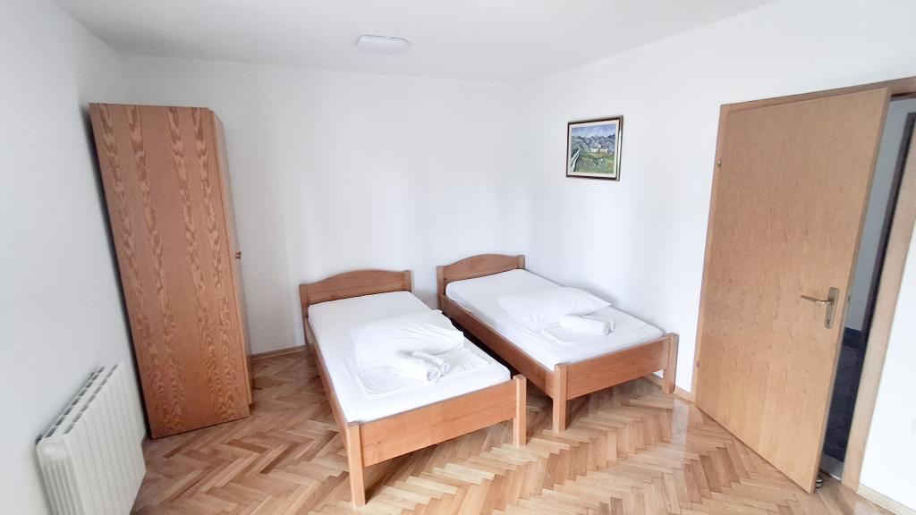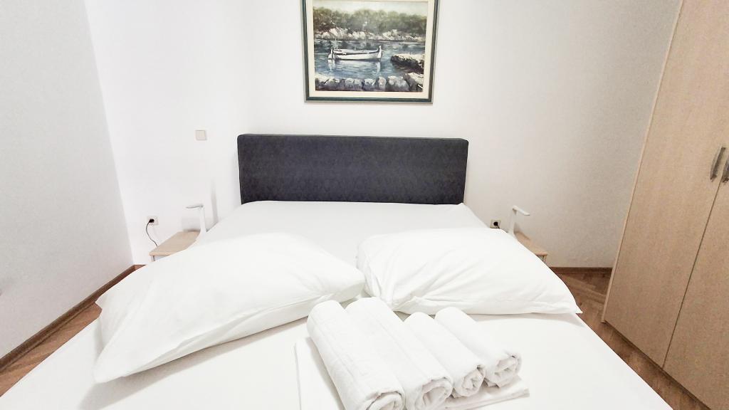 Twee appartementen, begane grond en eerste verdieping, verhuurd in augustus. Zeer dicht bij het prachtige strand, dicht bij winkels. Appartementen zijn schoon en uitgerust met de meest noodzakelijke dingen. Airconditioning, maar slechts in één kamer per appartement, prima plek voor een barbecue. Het is het beste om het hele huis met vrienden te huren. De eigenaren zijn aardig en glimlachend. Wij komen zeker terug. Ik raad het aan.