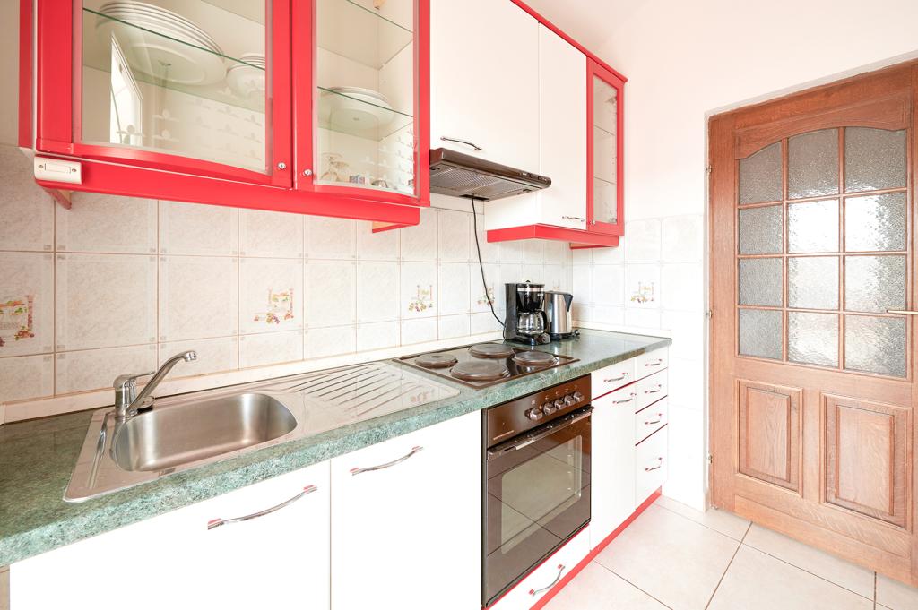 + mooi, groot appartement met twee slaapkamers op ongeveer 50 meter van het strand, groot terras met zeezicht, minibalkon, pergola met open haard, kamer met wasmachine en strijkplank, eigen föhn, handdoeken, strijkijzer, wasdroger in de kamer, volledig uitgeruste keuken, grote parkeerplaats bij het huis - een rokerige spiegel in de badkamer waar je jezelf niet in kon zien, we misten een grote spiegel in de gang, er was geen airconditioning in een slaapkamer
