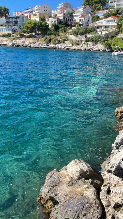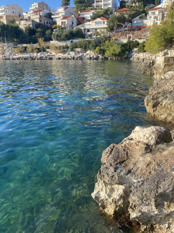 Mooi appartement met alles wat je nodig hebt. Geweldig uitzicht vanaf het balkon en een mooi terras voor ontbijt en diner. Het is rustig en een mooie omgeving. Perfect voor ons als gezin van vier, 2 kinderen van 9 en 11 jaar. (Het is behoorlijk steil naar beneden naar de oceaan (die dichtbij) en de stoep is ruw, dus ik raad geen kinderwagens of rolstoelen aan.) Gemakkelijke toegang, of je nu wil je vanaf de kliffen zwemmen met ladders, mijn meiden gaven daar de voorkeur aan, of als je met kiezels naar het strand wilt. Het water is geweldig!! Zo duidelijk! We hebben 2 heerlijke weken gehad en Darko en zijn ouders zijn geweldig en zo behulpzaam.