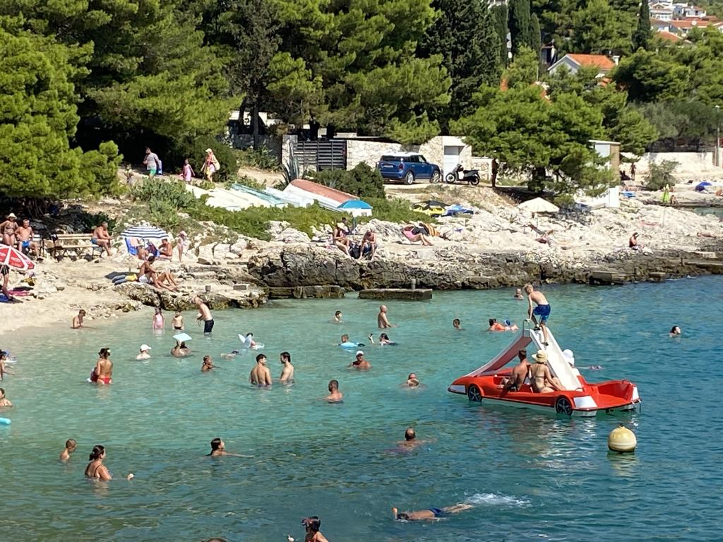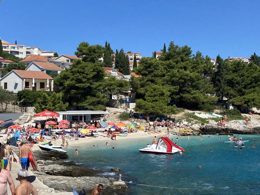 Perfecte accommodatie voor ons. Fris, schoon en alle faciliteiten die nodig zijn voor ontbijt en diner waren beschikbaar. Koelkast en vriezer, magnetron, koffiezetapparaat. Wasmachine, airconditioning en douche, etc. Dicht bij de zee, misschien iets meer dan 100 m, veel badplaatsen zijn heel dichtbij, je kunt langs de hele kust zwemmen, meestal rotsen maar ook stranden. Wij woonden op de 2e verdieping. 2 balkons in 2 verschillende richtingen met uitzicht op zee. Rustig en vredig, vlakbij diverse restaurants, op loopafstand van winkels en restaurants, strand en autoverhuur. Als u het nachtleven zoals Trogir wilt bereiken, is dit met de taxi dichtbij. We zullen terugkomen. Bedankt Darko voor een heerlijke vakantie. We kunnen zowel Darka als het appartement ten zeerste aanbevelen. Hij is ook erg vriendelijk en gaf goede tips over eten en bezienswaardigheden. Anne en Johan met hun gezin.