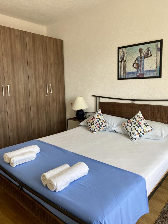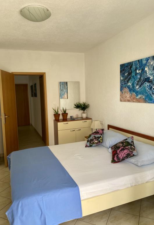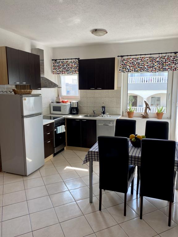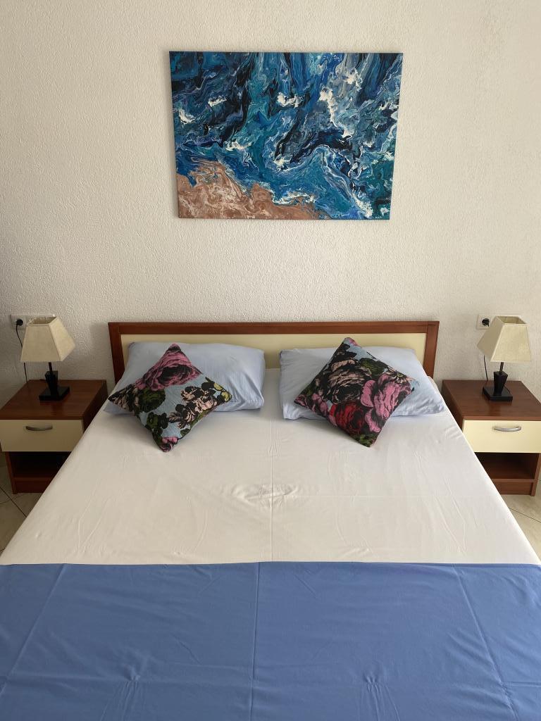 Een gezellig appartement op de derde verdieping met zeezicht vanaf één balkon. Perfect met twee balkons om te kunnen kiezen uit zon en schaduw. Eén balkon is iets groter en daar is het heerlijk zitten en eten. Een goede keuken met alles wat je nodig hebt voor het dagelijks leven. Een airco in de keuken, goede ventilatoren in de slaapkamers. Twee goede slaapkamers met tweepersoonsbedden. Er is voldoende parkeergelegenheid binnen de poort en de omgeving is rustig en veilig. Zeer goed contact met de verhuurder en zijn gezin. Ze waren uiterst gastvrij en behulpzaam.
