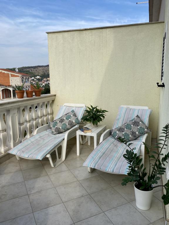 Fantastisch Een 2+1 bed met terras, perfect voor onze hond. Zeer aardige familie en behulpzame gastheer. Rustige en fijne omgeving, dicht bij restaurants, zee, winkels en het dorp. Makkelijk te bereiken met de taxi naar Split of Trogir.