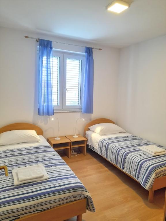 Appartement Banić ligt in Melin, een rustig deel van Cres. Het appartement bevindt zich op de eerste verdieping en is geschikt voor maximaal 4 personen. Het bestaat uit twee slaapkamers, een woonkamer met keuken en eethoek, een badkamer, een hal en een balkon. Het appartement is voorzien van airconditioning, gratis wifi en satelliet-tv. De airconditioning bevindt zich in de woonkamer. Handdoeken, beddengoed en de eindschoonmaak zijn bij de prijs inbegrepen. Er is parkeergelegenheid voor onze gasten naast de hoofdingang van het gebouw. Bedden kunnen indien nodig in overleg worden samengevoegd of uit elkaar worden geplaatst. Er is een kinderpark vlakbij het gebouw. De stranden en het stadscentrum liggen op 10-15 minuten lopen van het appartement.