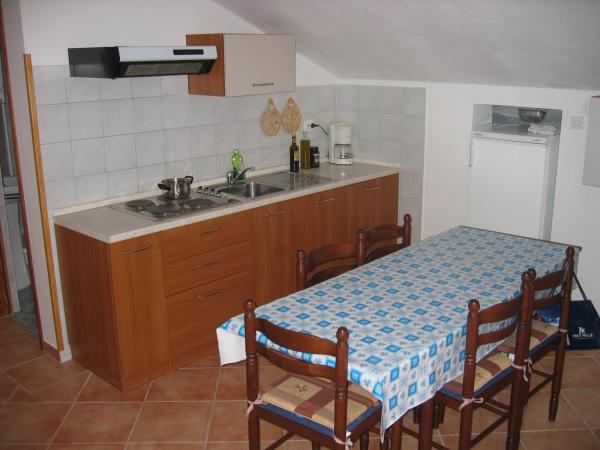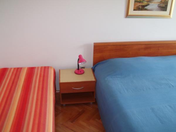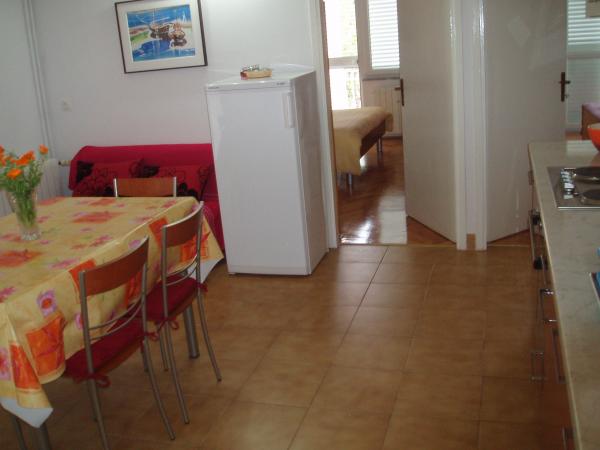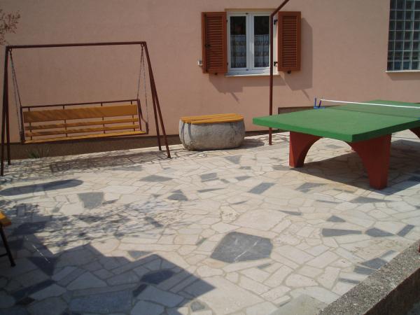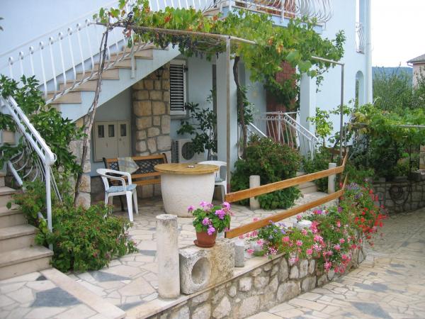 Familiehuis op een rustige en aantrekkelijke locatie met 5 appartementen: 3 appartementen met een slaapkamer voor twee personen, verdeeld over de begane grond, eerste en tweede verdieping; 1 appartement met twee kamers voor 4 personen op de tweede verdieping, met zeezicht; 1 appartement met drie kamers voor 5 of 5+1 personen, op de begane grond. Het huis is omgeven door een tuin en een terras, op korte afstand van het stadscentrum (5-7 min) en het strand (3-4 min). Er is een eigen parkeerplaats en een fietsenstalling. De appartementen zijn ruim (40 m² - 80 m²), volledig en modern ingericht en beschikken over airconditioning, internet, balkons en een terras. De appartementen op de tweede verdieping hebben zeezicht. De appartementen op de mezzanine liggen in een tuin met veel groen en bloemen. Op het erf vindt u een tafeltennistafel, een schommel, een barbecue en stenen monumenten. Restaurants en een supermarkt bevinden zich in de buurt. Het lange en zonnige strand is zandig en rotsachtig. Langs het strand staan dennen- en olijfbomen. In de omgeving zijn tennisbanen, fietspaden, mogelijkheden om te zeilen, duiken, waterskiën en excursies te ondernemen. Ook bootverhuur is mogelijk. De familie Orbanić wenst u een aangenaam verblijf op Cres.