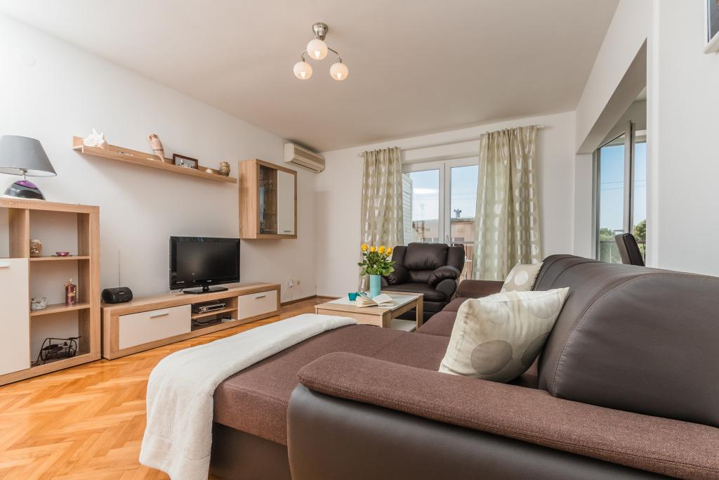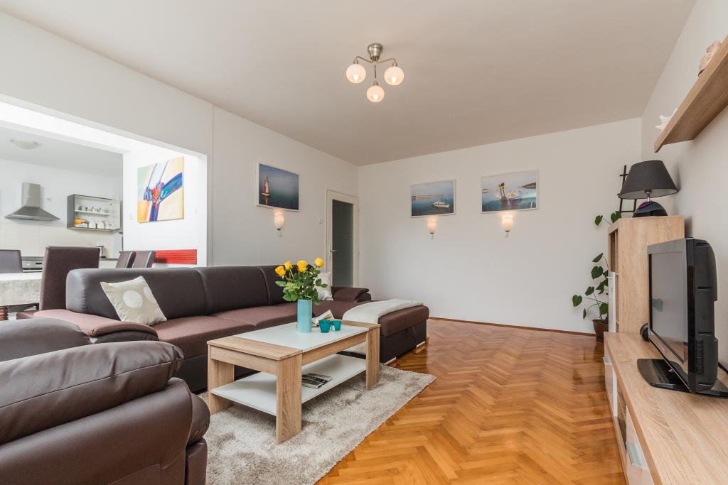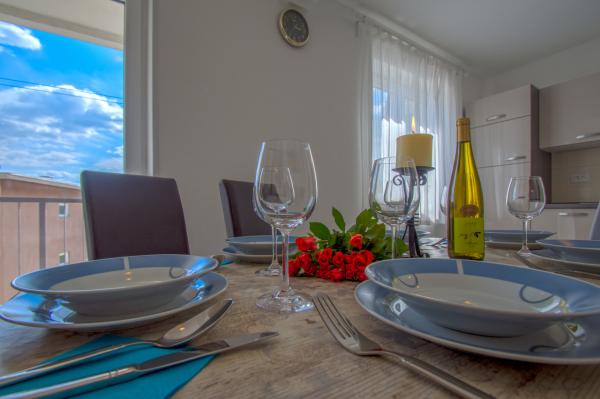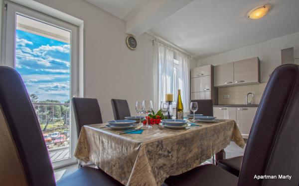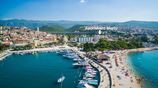 Apartment Marty is gelegen in het centrum van Crikvenica! Het appartement is 76m2 en is gelegen in een woongebouw, op de 2e verdieping, en binnen de appartementen van minder dan 50 meter zijn gelegen postkantoor, bank, winkels, busstation, strand. Het is erg leuk en comfortabel, en bestaat uit een volledig uitgeruste keuken, eetkamer, badkamer met douche, toilet, woonkamer, twee slaapkamers en een balkon. Parkeren is openbaar.