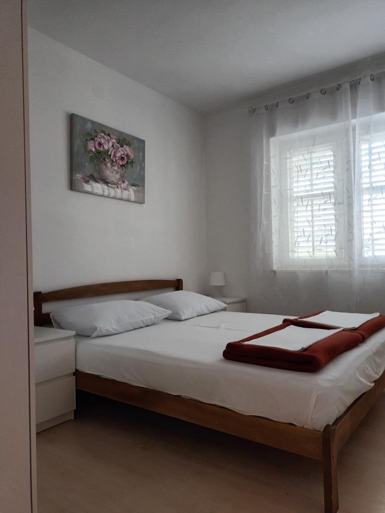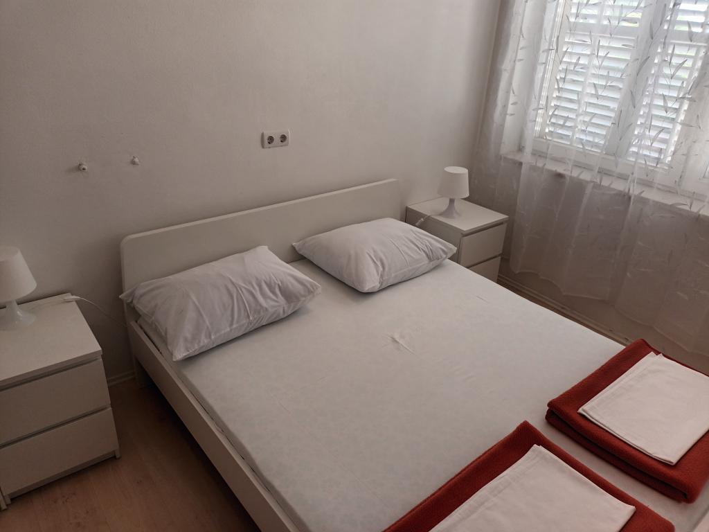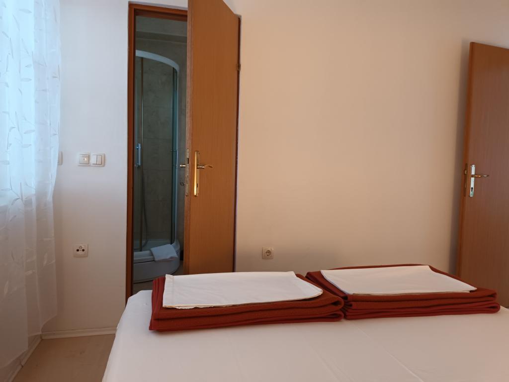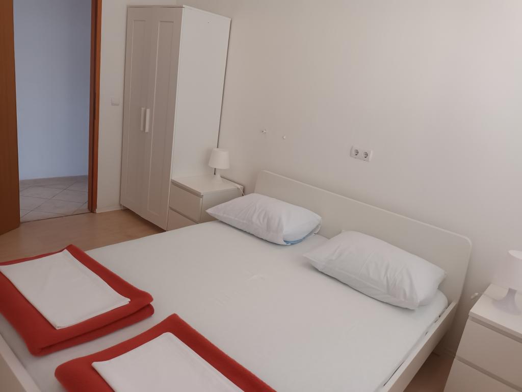 Twee volledig ingerichte appartementen op de eerste verdieping van een gezinswoning met een prachtig uitzicht op zee. Eén appartement (links) bestaat uit twee slaapkamers, twee badkamers (elke kamer heeft een eigen badkamer), een keuken met woonkamer en een terras. Het tweede appartement (rechts) bestaat uit een hal, een slaapkamer en een grote woonkamer met keuken, evenals twee badkamers en een terras. De appartementen beschikken over een eigen parkeerplaats. De afstand tot het centrale plein in het stadscentrum is 5 minuten lopen en tot het strand in het stadscentrum is het ongeveer 7 minuten lopen. Het dichtstbijzijnde strand in het stadscentrum is een kiezelstrand, aangelegd met een speeltuin, restaurants en bars en is geschikt voor gezinnen met kinderen. Het wordt ook gevolgd door een aangelegd zandstrand. Elk appartement beschikt over een eigen parkeerplaats. Gasten kunnen in het hele pand gratis gebruikmaken van wifi.