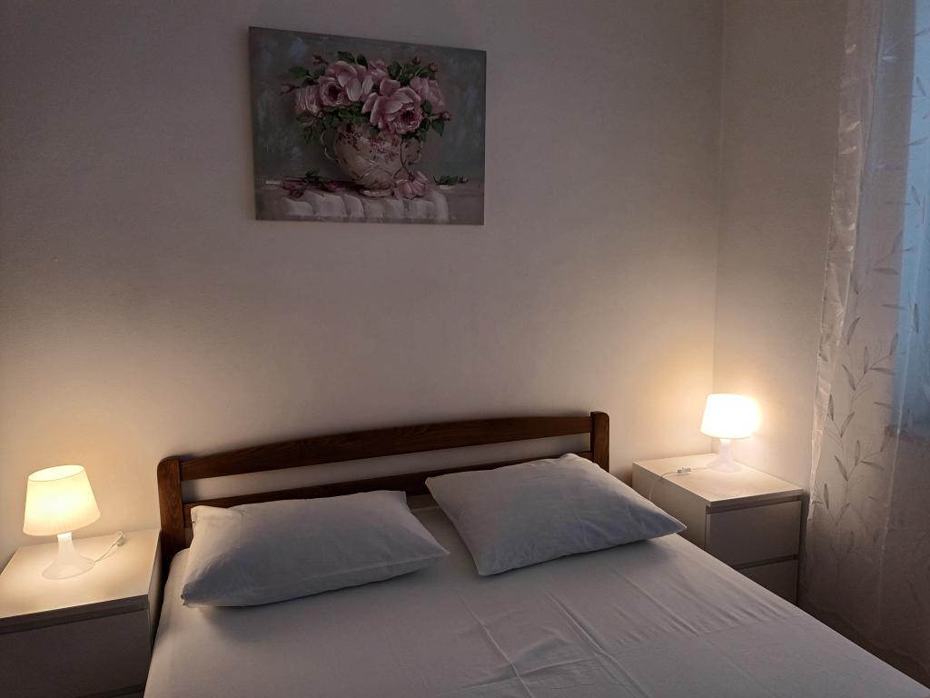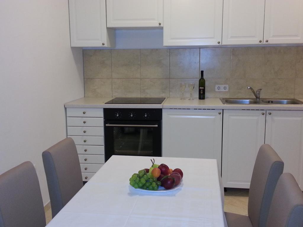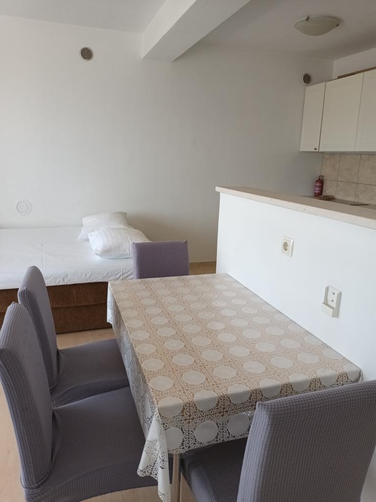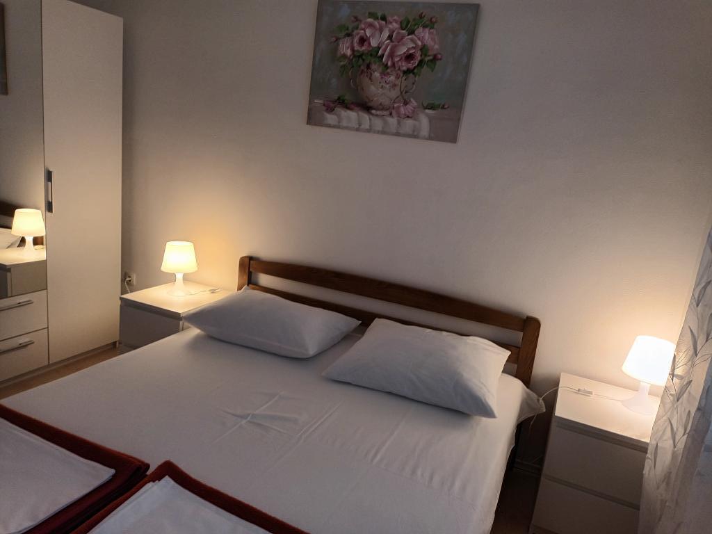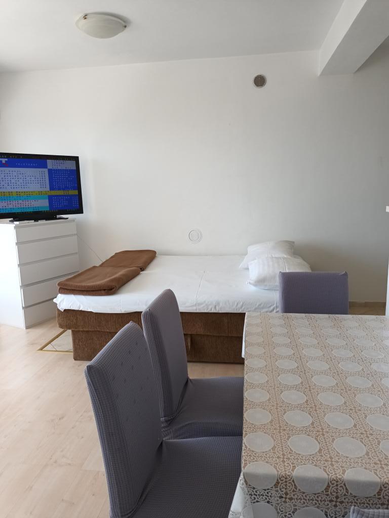 Twee volledig ingerichte appartementen op de eerste verdieping van een gezinswoning met een prachtig uitzicht op zee. Eén appartement (links) bestaat uit twee slaapkamers, twee badkamers (elke kamer heeft een eigen badkamer), een keuken met woonkamer en een terras. Het tweede appartement (rechts) bestaat uit een hal, een slaapkamer en een grote woonkamer met keuken, evenals twee badkamers en een terras. De appartementen beschikken over een eigen parkeerplaats. De afstand tot het centrale plein in het stadscentrum is 5 minuten lopen en tot het strand in het stadscentrum is het ongeveer 7 minuten lopen. Het dichtstbijzijnde strand in het stadscentrum is een kiezelstrand, aangelegd met een speeltuin, restaurants en bars en is geschikt voor gezinnen met kinderen. Het wordt ook gevolgd door een aangelegd zandstrand. Elk appartement beschikt over een eigen parkeerplaats. Gasten kunnen in het hele pand gratis gebruikmaken van wifi.