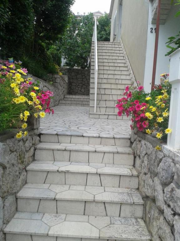 Op slechts 5 minuten lopen naar het centrum van Crikvenica in een rustige straat met uitzicht op Kvarner en het eiland Krk en verscholen tussen de bloemen liggen de appartementen van de familie Jukić. De appartementen zijn modern uitgerust en bieden u het comfort om comfortabel uw vakantie door te brengen. Onze appartementen zijn gelegen in een rustige doodlopende straat, er zijn gratis parkeerplaatsen beschikbaar voor het huis.