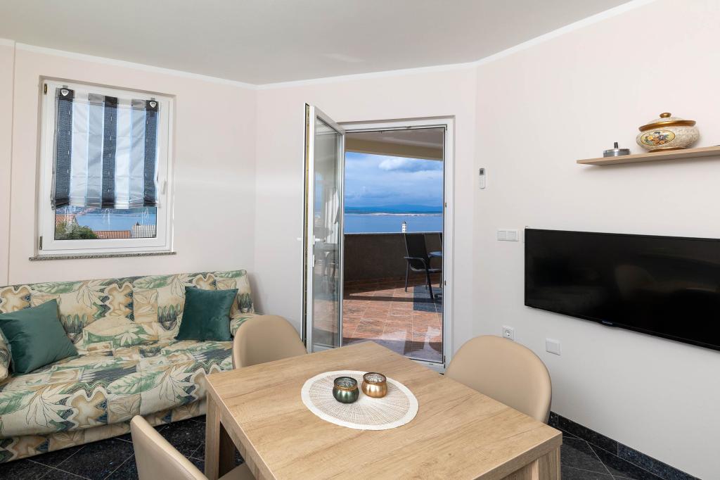 Moderne en luxueus ingerichte appartementen met een extreem groot balkon/terras in een rustige buurt van Crikvenica. Het huis is omgeven door een grote tuin met mediterrane planten. Het ligt op 7 minuten lopen van het strand en op 10 minuten lopen van het stadscentrum.