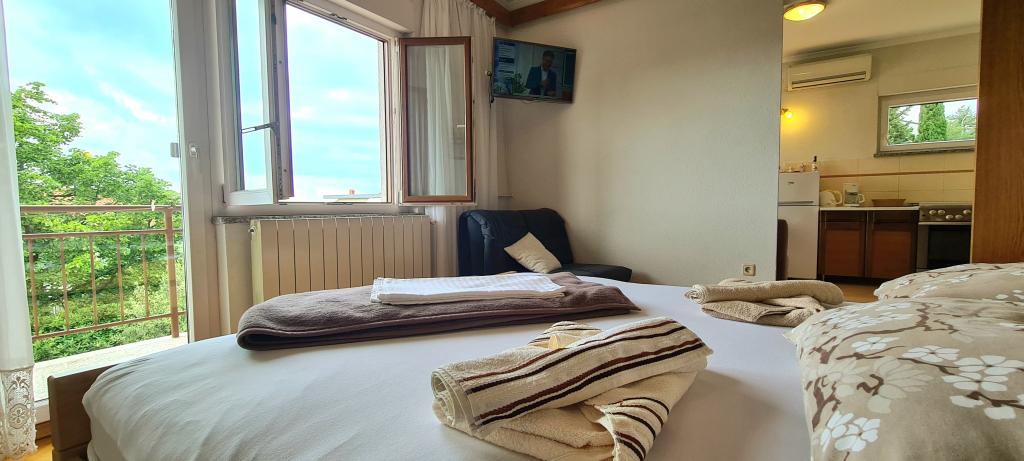 Welkom in onze appartementen in Crikvenica! Appartement 2+1 bevindt zich op Tina Ujevića 8 in Crikvenica op de 1e verdieping van een gezinswoning; Het bestaat uit twee met elkaar verbonden kamers: een slaapkamer met badkamer en toilet en een keuken. Het beschikt over een balkon met een prachtig uitzicht op zee en achter het huis is er een terras dat gebruikt kan worden. Geschikt voor 2 + 1 personen. Het appartement beschikt over airconditioning, satelliettelevisie en WiFi. Er is parkeergelegenheid. Er zijn prachtige zand- en rotsstranden in de buurt.