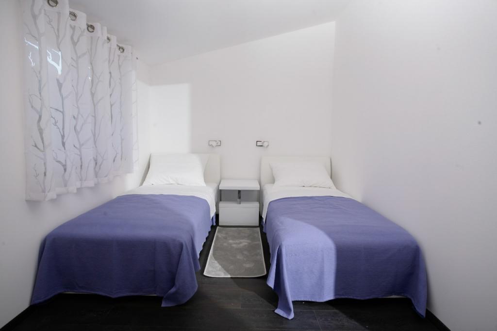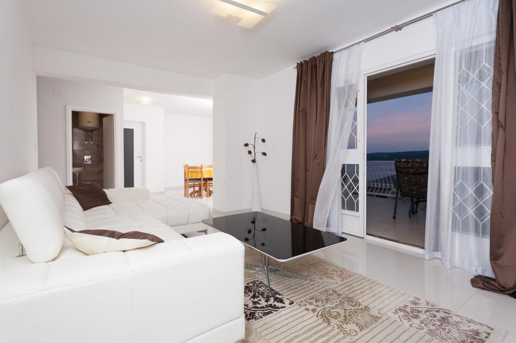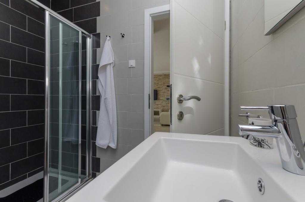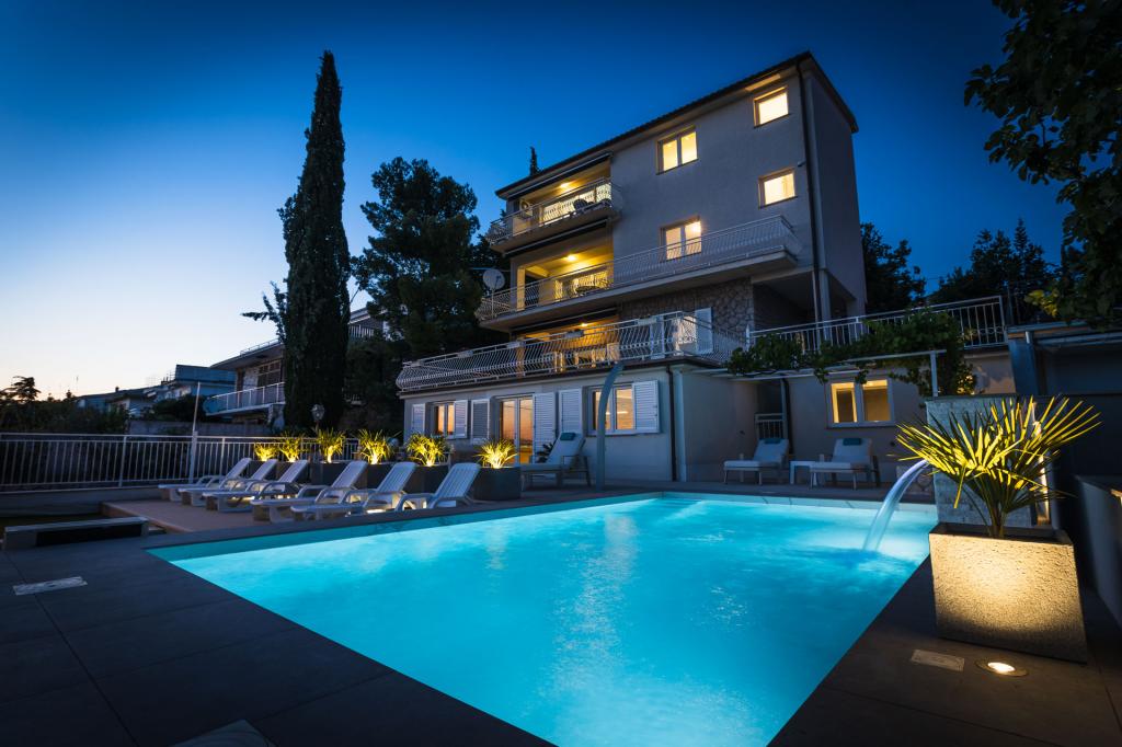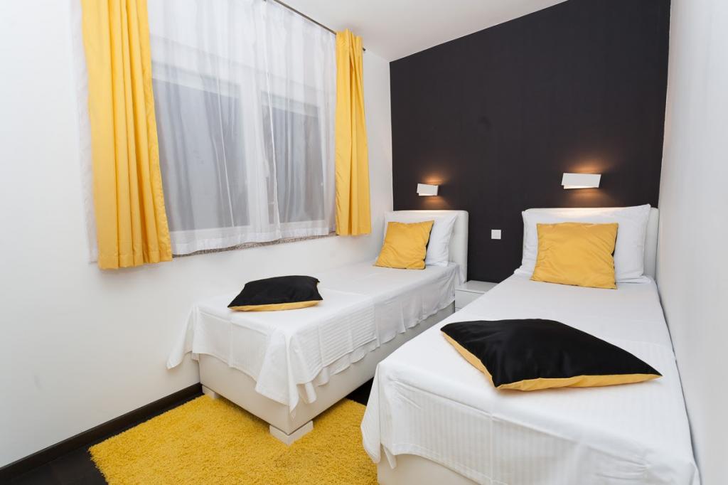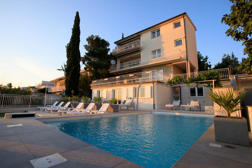 Modern ingerichte, luxe appartementen met 4 sterren, airconditioning en gratis internet. Mogelijkheid voor nog een persoon op een extra bed (€ 15/dag). Huisdieren toegestaan (€ 10/dag). Gebruik van een wasmachine (7 euro per wasbeurt). De appartementen bestaan uit twee slaapkamers, woonkamer, keuken, badkamer met toilet en nog een apart toilet. Aan de zuidkant van het huis heeft elk appartement een terras met uitzicht op de zee en het zwembad. Het zwembad is eco, wat betekent dat er geen chloorgeur of irritatie aan de ogen of huid is. Zeer veilig voor de gezondheid van kinderen. Elk appartement heeft een eigen parkeerplaats, die 24 uur per dag onder videobewaking staat. Op de begane grond van de woning bevindt zich een winkel met eten en drinken. Het dichtstbijzijnde strand ligt op 4 minuten lopen. De faciliteit ligt op 20 minuten lopen van het stadscentrum, er is een mogelijkheid tot vervoer per toeristentrein, waarvan de halte voor het huis ligt.