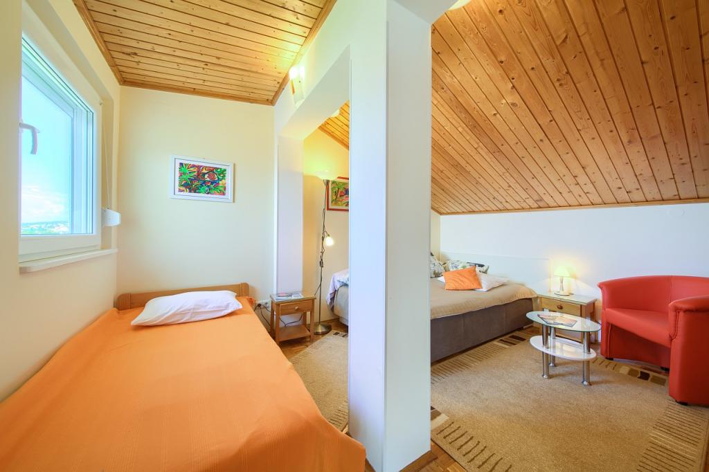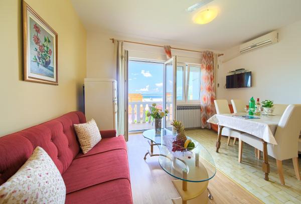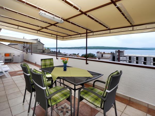 Omheinde villa in het centrum van Crikvenica, op de tweede rij van de zee, op 3 minuten lopen van het strand en de boulevard, en op 5 minuten van het centrum. Aangelegde tuin, tuin met barbecue en open haard voor gasten en afgesloten parkeerplaats. Het huis beschikt over 4 comfortabele appartementen met uitzicht op de zee, de stadstuinen en het eiland Krk. Drie- en viersterrenclassificatie. 3 appartementen voor 4-5 personen en 1 appartement voor 2-3 personen. 4 sterren. Alle appartementen zijn comfortabel ingericht met een eigen terras of balkon, satelliet-tv, draadloos internet, airconditioning, kluisje voor geld en waardevolle spullen, volledig uitgeruste keukens met alle apparatuur en de mogelijkheid om gebruik te maken van de tuinbarbecue. Geopend van 1 mei tot en met 30 september. In de winterperiode: op speciaal verzoek een appartement voor 4 personen en een appartement voor 2 personen met centrale verwarming, balkons en uitzicht op de stadstuinen en het eiland Krk.