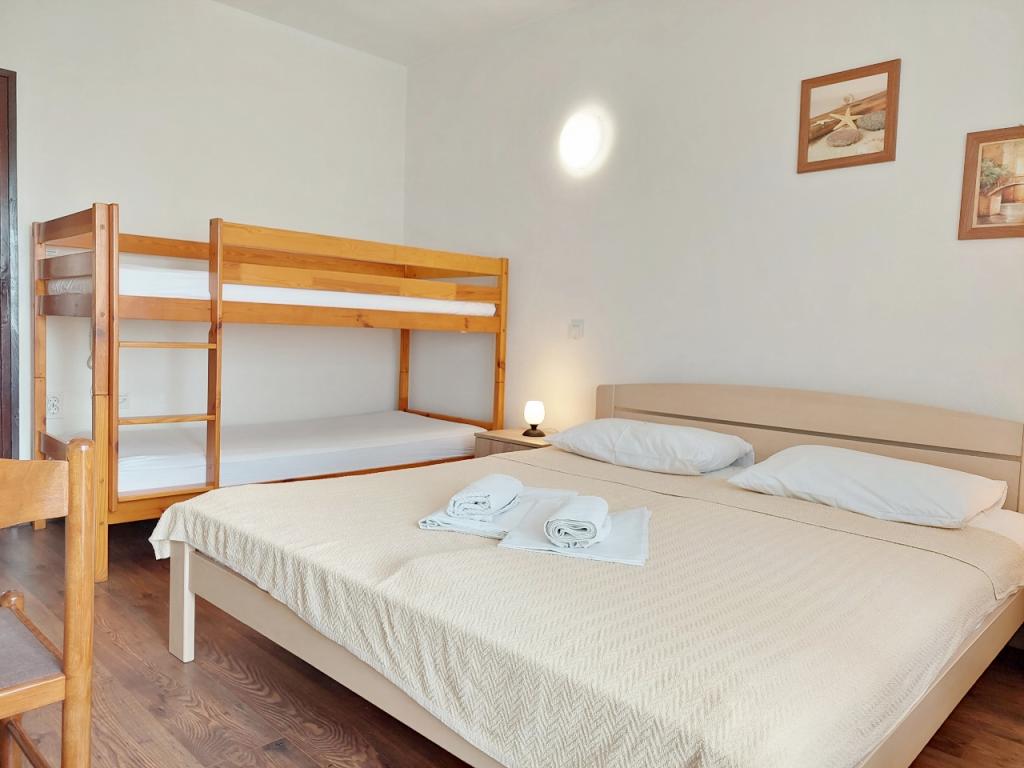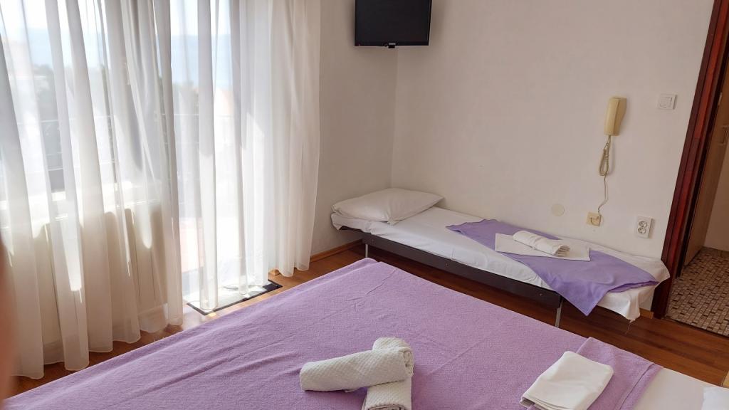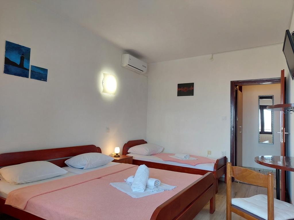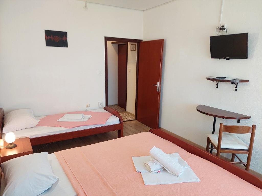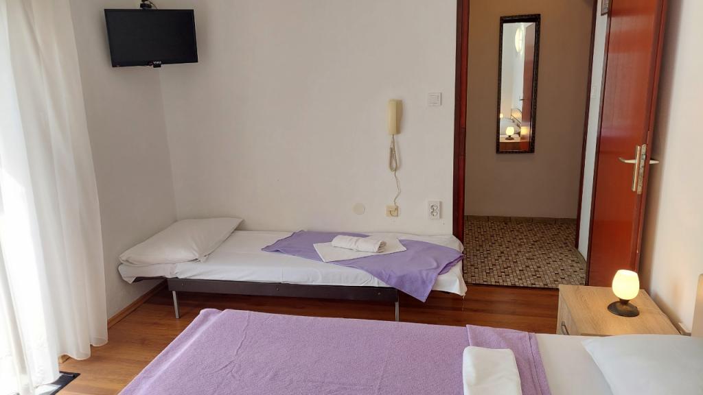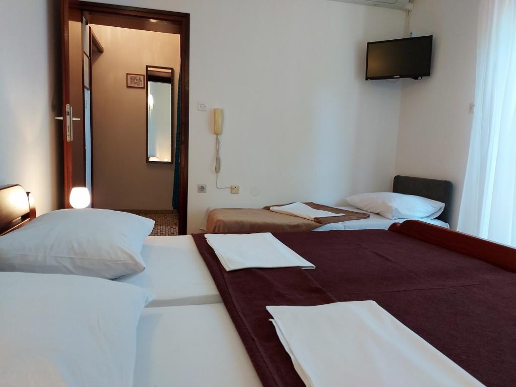 PANSION KLAUDIJA, met een familietraditie van meer dan 40 jaar, biedt accommodatie in 14 volledig uitgeruste kamers: douche, toilet, balkon (12 kamers met zeezicht), centrale verwarming, telefoon, satelliet-tv en airconditioning. Andere faciliteiten zijn: - privéparkeergelegenheid, - lounge met satelliet-tv, - kluis, - restaurant met bar en tuinterras, - prachtige tuin met fontein. - gratis internet (gratis wifi). Onze gasten, evenals alle andere bezoekers, hebben de beschikking over een restaurant met 80 zitplaatsen en een open terras. In een aangename sfeer en met vriendelijk personeel kunnen ze genieten van vele specialiteiten uit de lokale en internationale keuken.