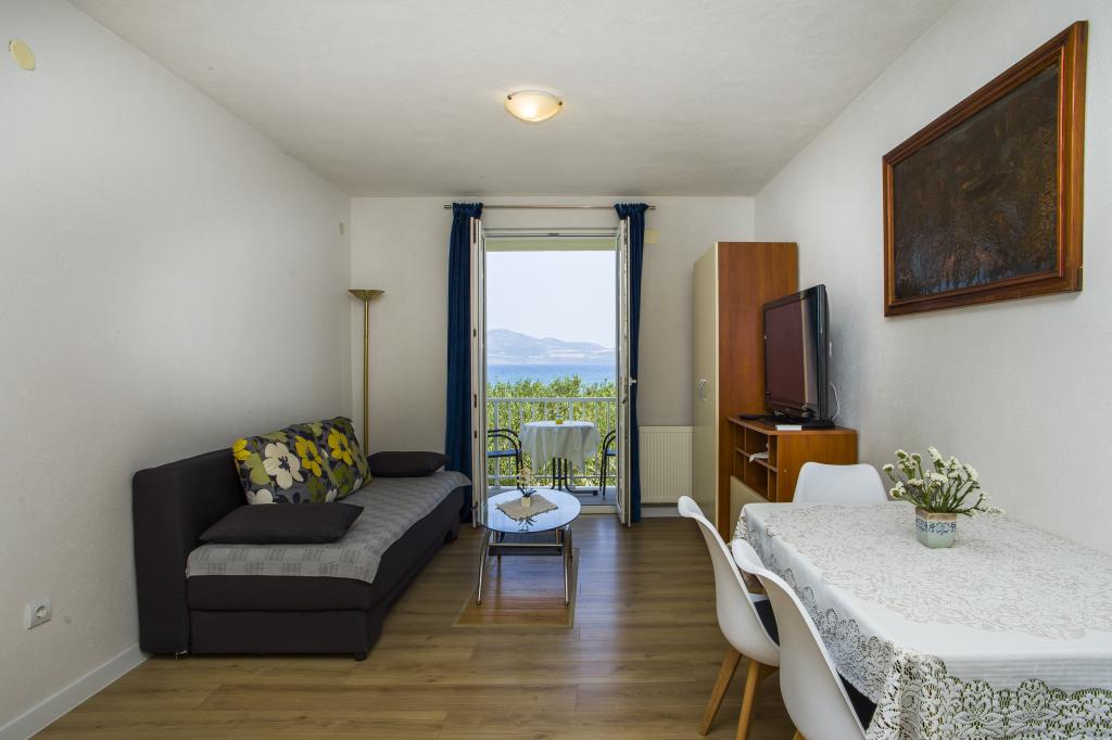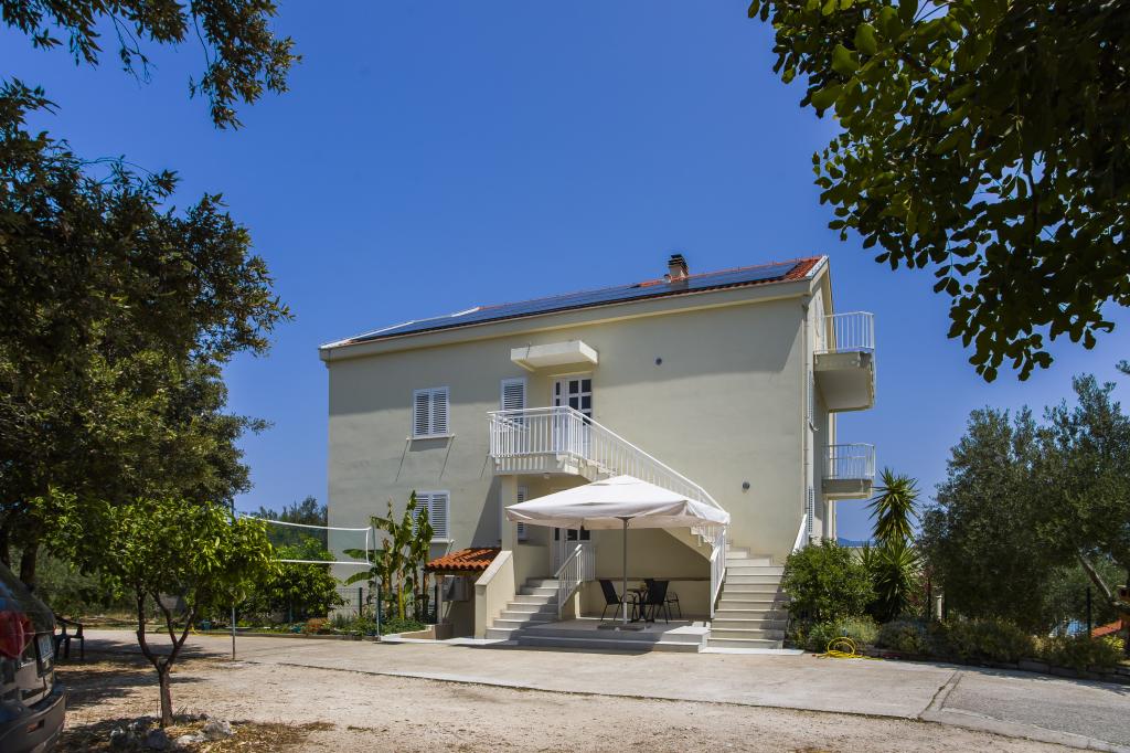 Het huis ligt op 20 meter van een kiezelstrand met fijn zand in de zee. Het bevindt zich op 500 meter van het dorp Drače (80 km van Dubrovnik) en is gelegen in een grote olijfgaard (10.000 m²). Er zijn drie appartementen op de begane grond en één appartement op de eerste verdieping. Gasten kunnen gebruikmaken van gratis WiFi en twee barbecues (een grote gedeelde barbecue en een kleine aparte barbecue voor appartement A1). Parkeergelegenheid is beschikbaar voor alle voertuigen. Alle appartementen beschikken over een wasmachine en airconditioning. De prijs van de accommodatie is inclusief drie ligstoelen op het strand.