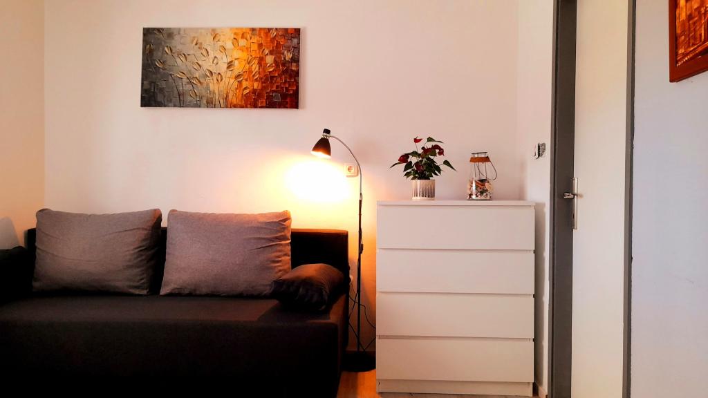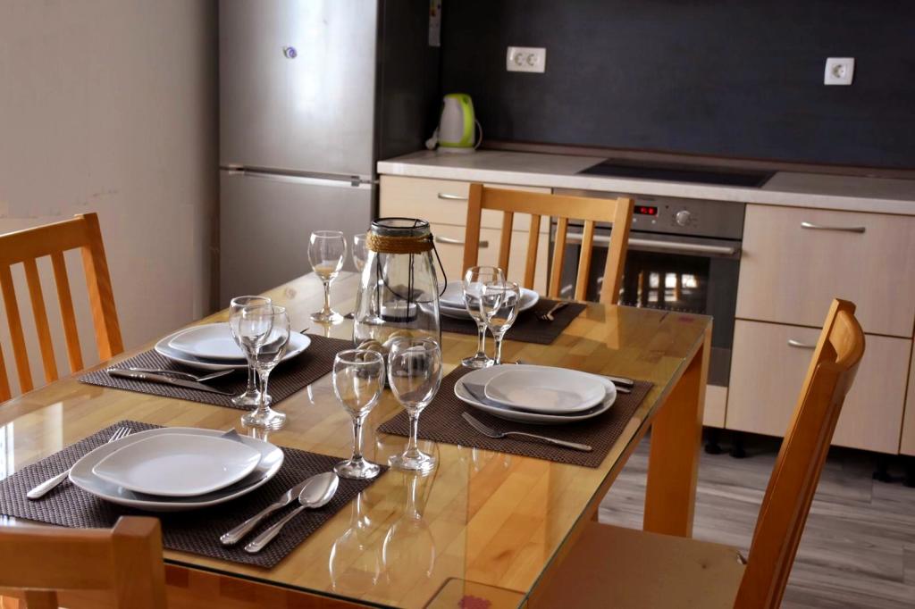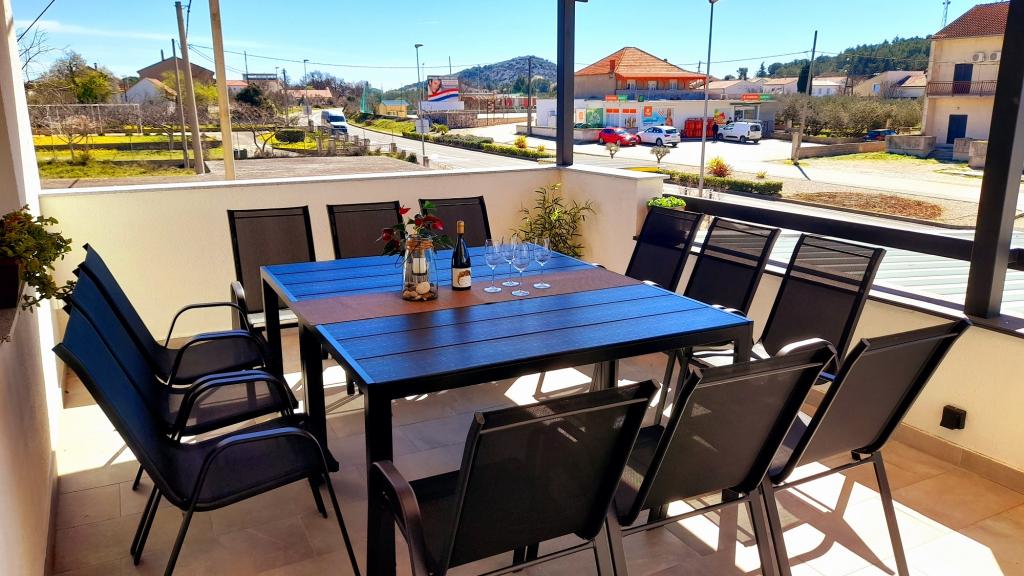 We verbleven hier zonder problemen met zeven personen. Een heel groot en mooi appartement, maar wel gelegen aan een drukke doorgaande weg. Onder ons terras is er een kruidenierswinkel, heel vaak gebruikt door automobilisten (behoorlijk luidruchtig). Tegenover is nog een kruidenierswinkel, waar de lokale bevolking elkaar weer ontmoet en ook niet stil is. Achter het huis is voldoende ruimte voor meerdere voertuigen, die rustig en veilig geparkeerd kunnen worden. Ik vond het echter niet fijn dat er onder het balkon hopen schroot en molen lagen, geen mooi uitzicht. Het appartement was zeer goed uitgerust, we merkten dat er geen koffiezetapparaat was (we hadden onze eigen Senseo dus daar hadden we geen last van). De huiseigenaar was erg aardig. Probleemloze communicatie. Korte samenvatting als je op zoek bent naar een ruim en schoon appartement, dan is dit de plek om te eten, maar als je 's avonds in alle rust buiten wilt zitten, is dit niet de plek voor jou. Daarom maar 3 sterren