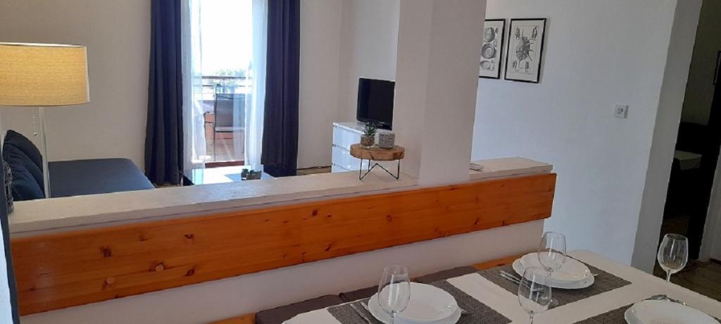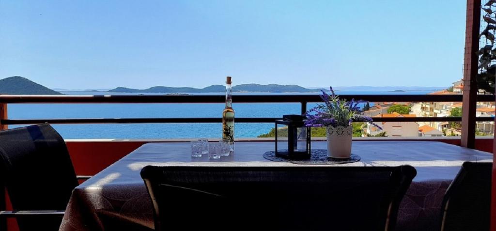 Appartement Mima ligt in de stad Drage, in de Dolaška Draga-baai, waar een groot kiezelstrand en talloze kleine geplaveide stranden zijn, omgeven door een dicht dennenbos dat voor natuurlijke schaduw zorgt. Gasten hebben ook de beschikking over een prachtige "lungo mare"-promenade, een kinderpark en diverse gezellige cafés. Het appartement is gelegen op de tweede verdieping en biedt een spectaculair uitzicht op de Kornati-archipel. Het strand ligt op 300 m. Het appartement heeft een slaapkamer, een badkamer, een keuken met een woonkamer met een slaapbank en een balkon met een prachtig uitzicht op de zee. Gasten hebben de beschikking over airconditioning, wifi plat internet, vaatwasser, magnetron... Parkeerplaats is voorzien voor het appartement.