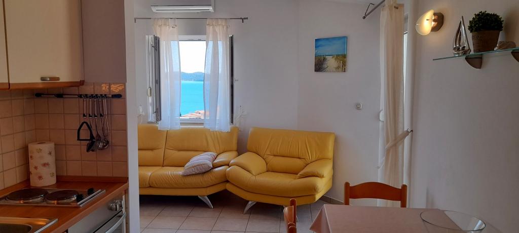 Apartment Sea View ligt in de stad Drage, in de Dolaška Draga-baai, waar zich een groot kiezelstrand en talloze kleine geplaveide strandjes bevinden. Gasten hebben ook de beschikking over een prachtige "lungo mare"-promenade, een kinderpark en diverse gezellige cafés. Het appartement bevindt zich op de derde verdieping van een klein woongebouw en biedt een prachtig en uniek uitzicht op de zee. Het ligt op 5 minuten lopen van het strand. Het appartement heeft twee slaapkamers, een badkamer, een keuken met woonkamer en drie balkons, en de gasten hebben de beschikking over twee airconditioners, WiFi plat internet, beveiligde parkeerplaats, wasmachine, koffiezetapparaat...