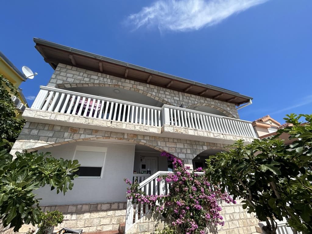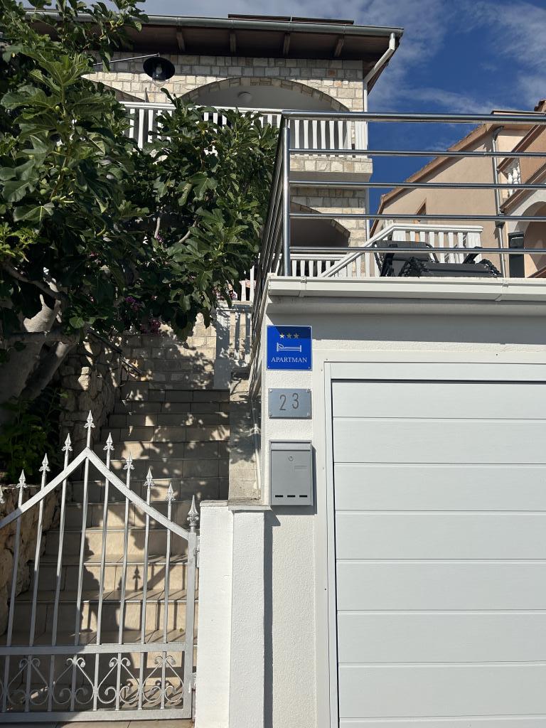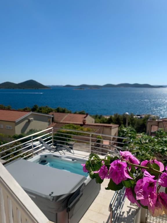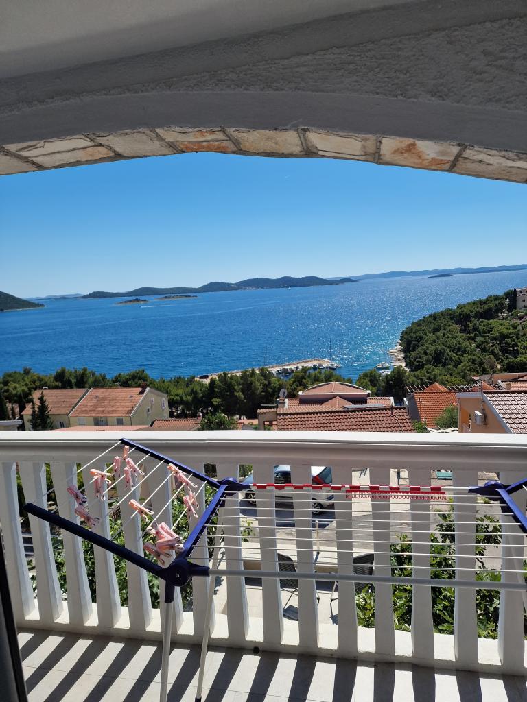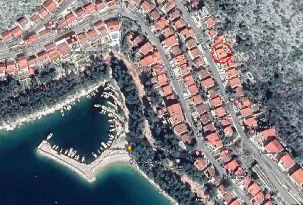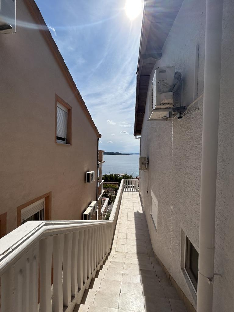 Appartement met een prachtig uitzicht op de zee en de Kornati-eilanden. Achter het appartement is er een terras met aangelegde tuin en een gemeenschappelijke barbecue. Het is 3 minuten lopen naar het strand. Langs de kust ligt een dicht dennenbos met een steen- en kiezelstrand (voor kinderen). Naast het strand is er ook een strandbar en een restaurant-pizzeria en bakkerij. De winkel ligt op slechts 300 meter afstand, 5 minuten lopen. Het natuurpark Vrana Lake ligt op 1500 meter afstand.