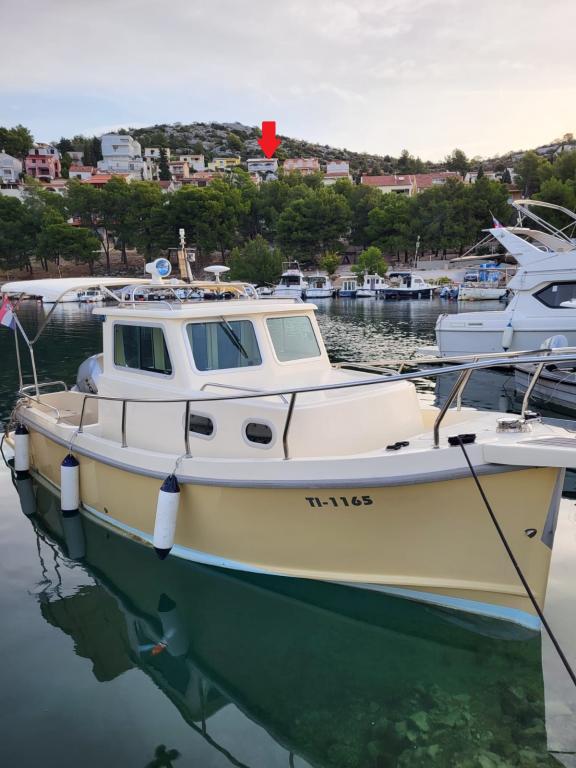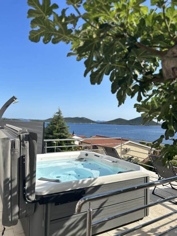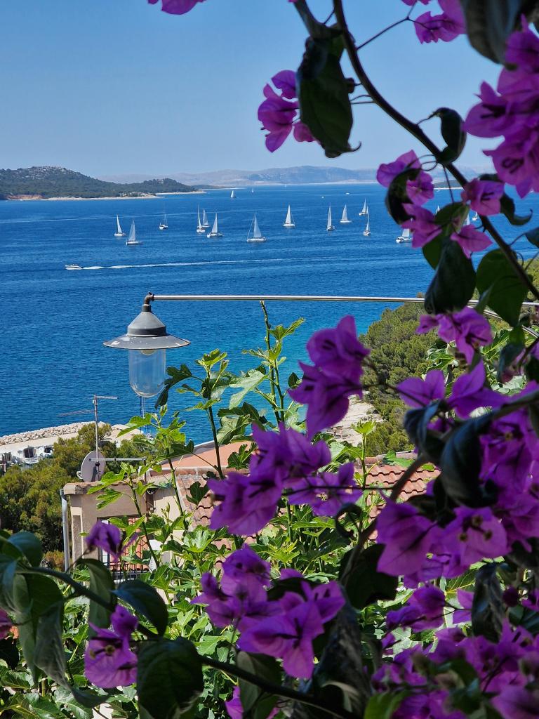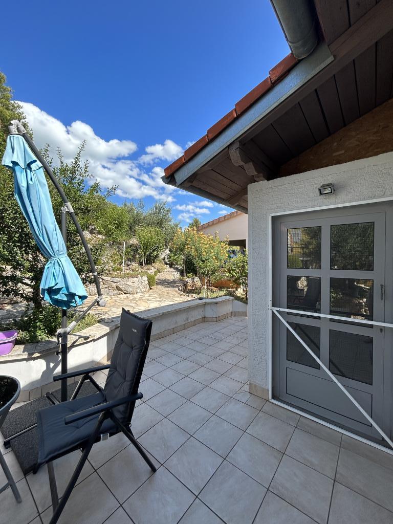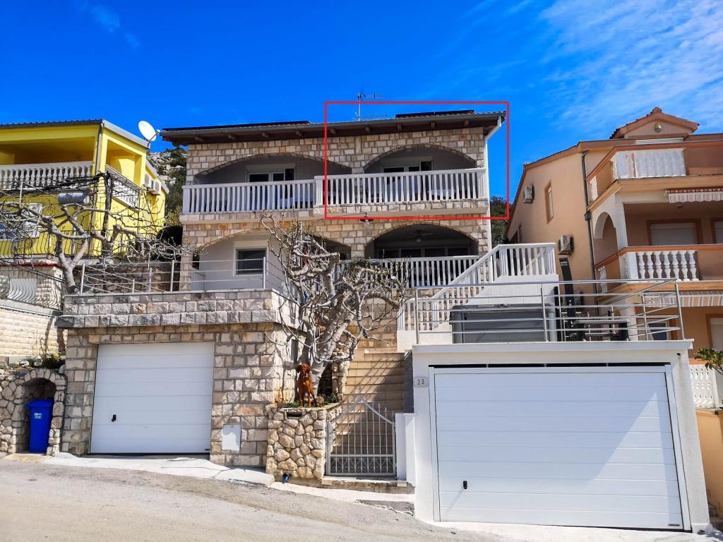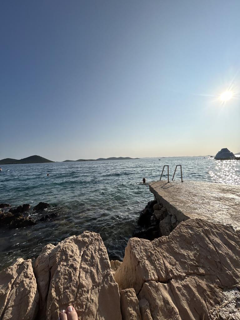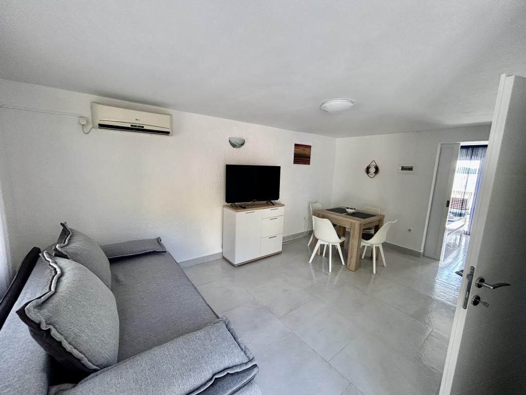 Appartement met een prachtig uitzicht op de zee en de Kornati-eilanden. Achter het appartement is er een terras met aangelegde tuin en een gemeenschappelijke barbecue. Het is 3 minuten lopen naar het strand. Langs de kust ligt een dicht dennenbos met een steen- en kiezelstrand (voor kinderen). Naast het strand is er ook een strandbar en een restaurant-pizzeria en bakkerij. De winkel ligt op slechts 300 meter afstand, 5 minuten lopen. Het natuurpark Vrana Lake ligt op 1500 meter afstand.