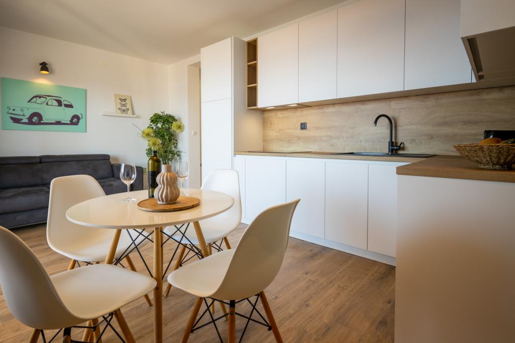 Appartementen Lea zijn in de eerste plaats een ideale plek voor een gezinsvakantie, maar ook voor iedereen die op zoek is naar een actieve vakantie en een leuke vakantie. LEA APPARTEMENTEN: 4 x 2+2 appartementen en 1 x 4+2 appartement. De appartementen liggen op ongeveer 50 meter van de zee. Elk appartement heeft toegang tot de terrassen, uitzicht op zee en alle benodigde apparatuur voor een aangenaam verblijf de hele dag. De appartementen zijn voorzien van airconditioning, satelliet-tv, gratis Wi-Fi-verbinding (optisch supersnel internet), grill en eigen garage! De appartementen zijn gecategoriseerd met 4*