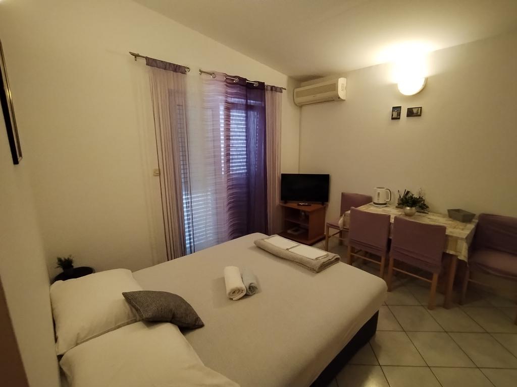 Appartementen Marko zijn volledig ingerichte appartementen voor vier personen. De appartementen bestaan uit een slaapkamer met een tweepersoonsbed en een kledingkast, een badkamer met douche, een woonkamer met een bed voor twee personen en een televisie. De keuken is voorzien van alle serviesgoed, magnetron, waterkoker, koelkast. Strijkijzer en strijkplank. Het appartement beschikt over airconditioning, Wi-Fi en elke gast heeft een eigen parkeerplaats. Het is ongeveer 900 meter naar het strand. Aan de ene kant ligt het prachtige Vrana-meer en aan de andere kant de zee. De winkel bevindt zich op 10 meter van het appartement. Een uitstapje naar de Krka-watervallen, een rondleiding door Kornati of een bezoek aan Zadar en het zeeorgel en nog veel meer zullen uw verblijf onvergetelijk maken. De gastheer heeft zijn eigen wijn, die elke gast ontvangt als teken van welkom. De faciliteit heeft ook een grill.
