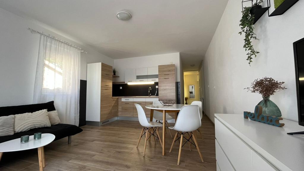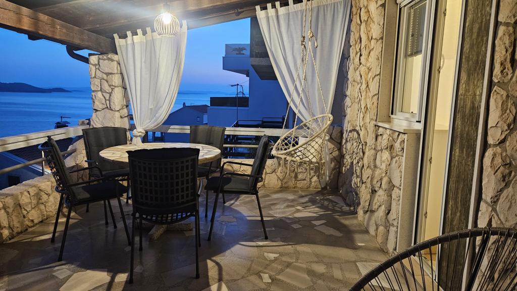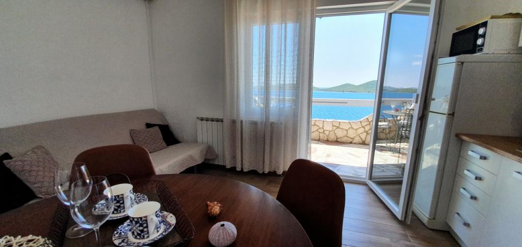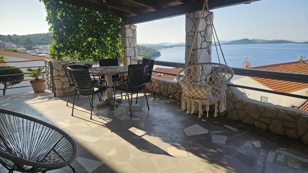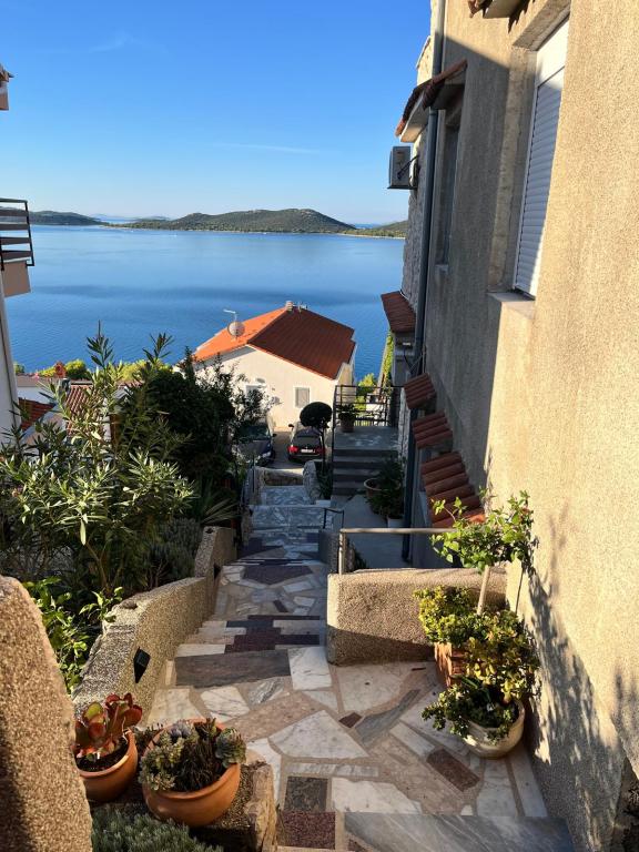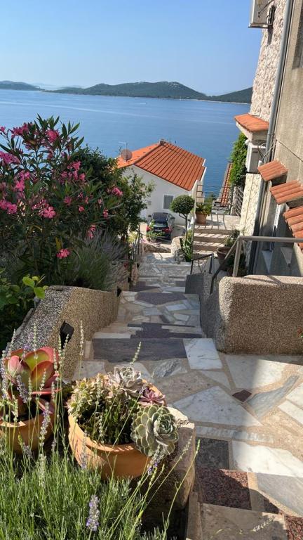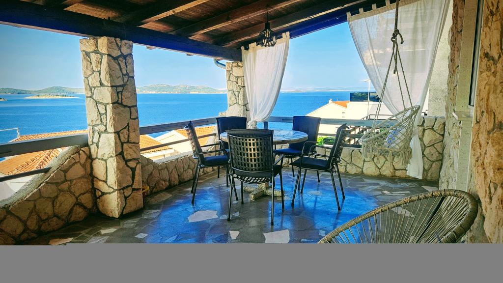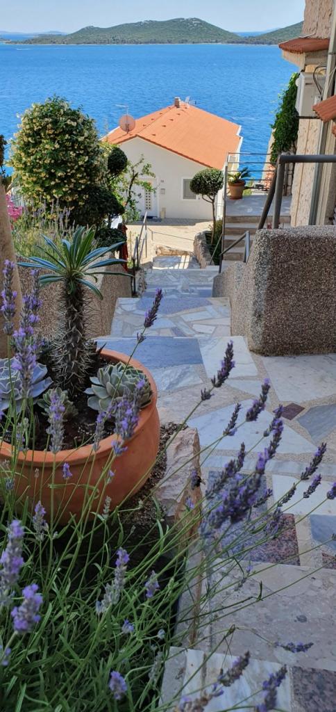 Volledig en modern ingerichte appartementen in een rustige omgeving met een prachtig uitzicht op de zee die zich uitstrekt tot aan Kornati. De appartementen bevinden zich op de tweede rij aan zee, u hoeft dus alleen maar de trap naar beneden te nemen naar de zee, waar verharde stranden zijn, een kristalheldere zee en prachtige schaduw en de geur van pijnbomen. En in de directe omgeving bevindt zich een kiezelstrand, een waar paradijs voor kinderen. Al onze appartementen hebben een beveiligde parkeerplaats en gasten kunnen ook gebruikmaken van de gemeenschappelijke grill. Restaurants en cafés aan het strand liggen op 5 minuten afstand. en de dichtstbijzijnde winkel ligt op 10 minuten lopen.