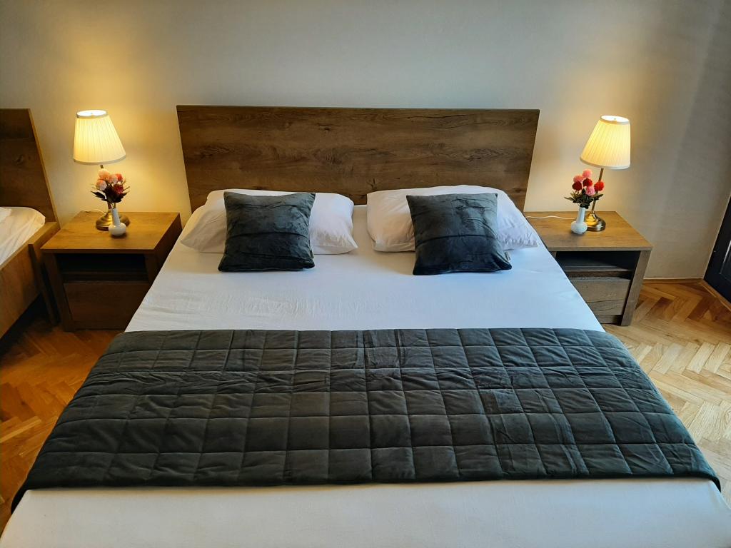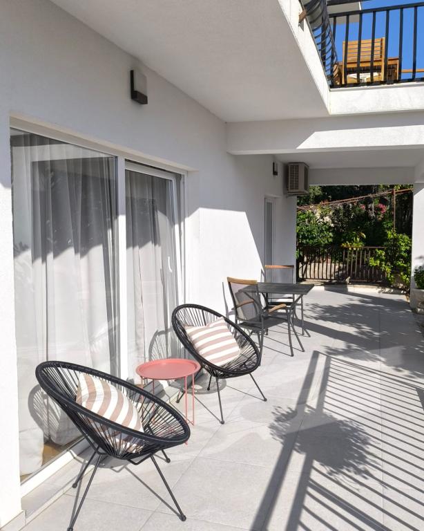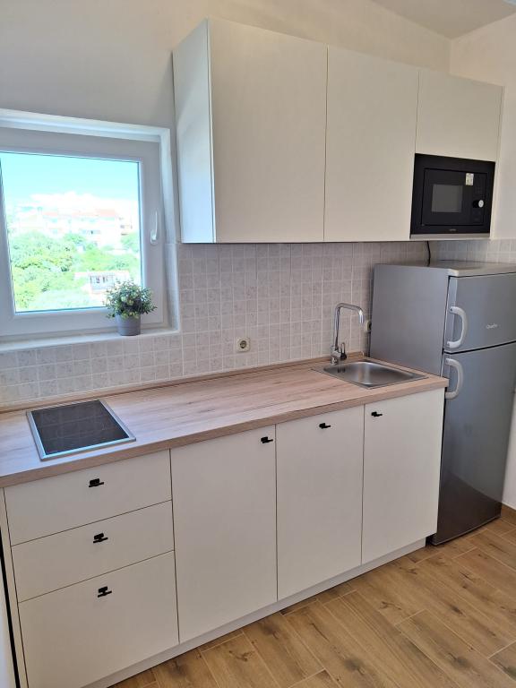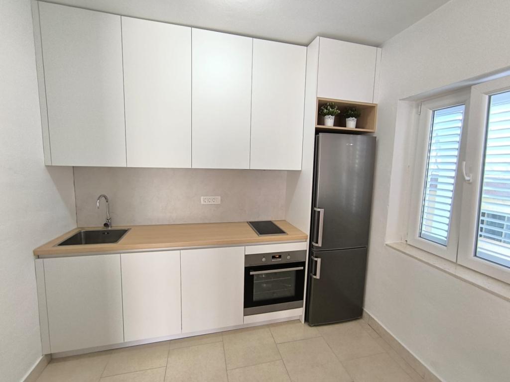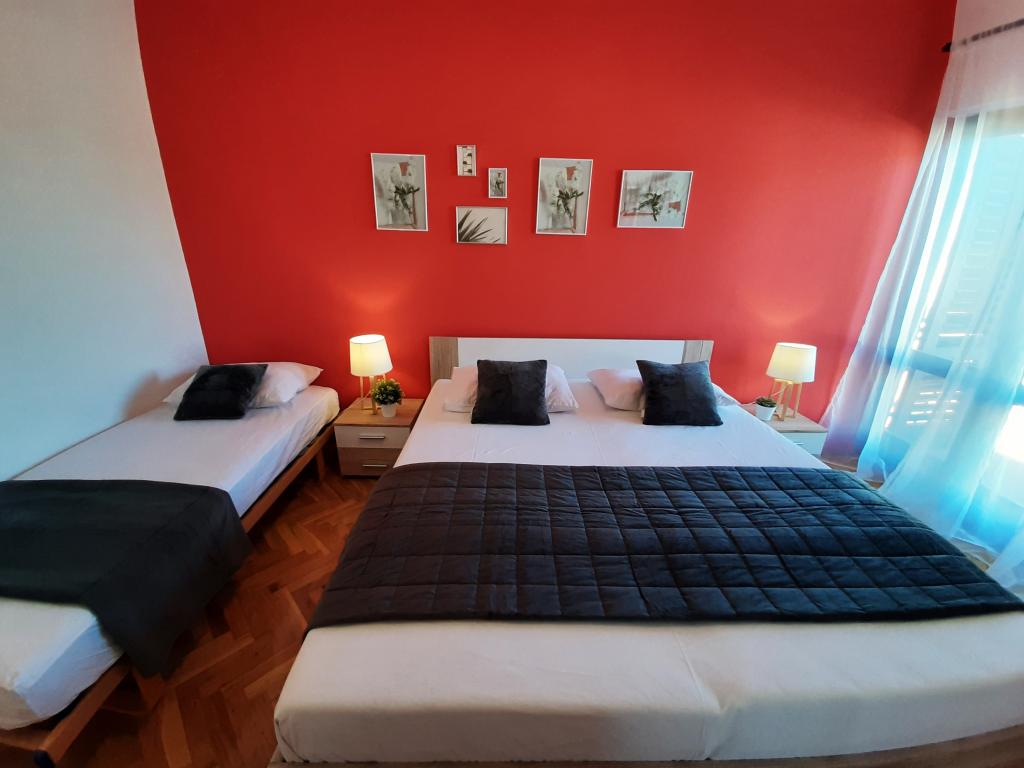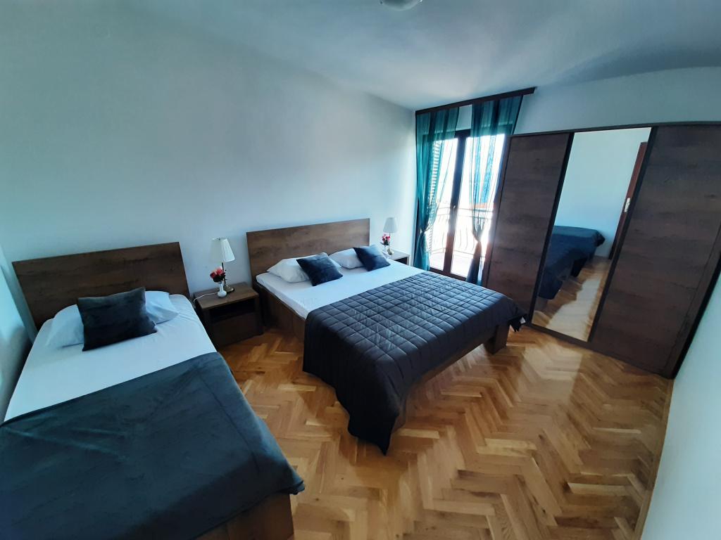 Volledig ingerichte appartementen (fornuis, koelkast, bestek en koken) en satelliet-tv, en een parkeerplaats direct naast het object in Drage, op 200 meter van het strand. De appartementen bestaan uit een of twee slaapkamers, een badkamer met toilet, douche, keuken, eetkamer en een terras met uitzicht op de zee en de eilanden van de mooie Riviera. Alle noodzakelijke voorzieningen (restaurants, winkels, bakkerijen, cafés ..) ligt op slechts 2 minuten lopen van het huis. Sluit Vrana meer en Kornati bijdragen Drage perfecte plaats om een vakantie door te brengen.
