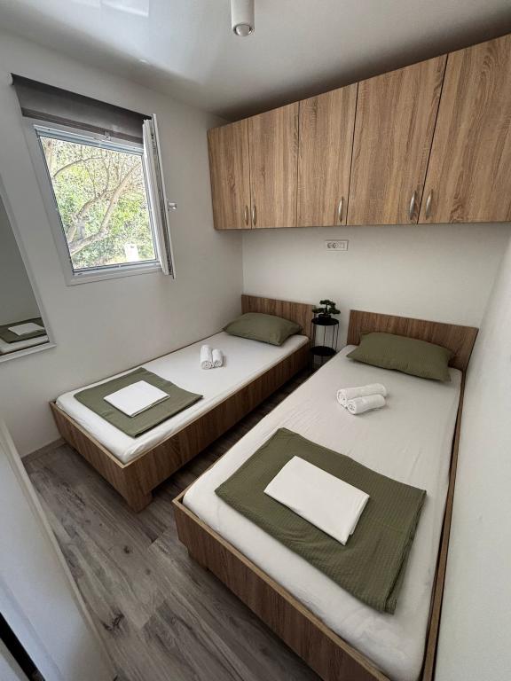 Olive Nest is een stacaravan die beschikbaar is vanaf 2024. De stacaravan is van alle gemakken voorzien en heeft een modern design. De woning heeft een oppervlakte van 32 m² en een overdekt terras van 32 m². De woning beschikt over een slaapkamer met een tweepersoonsbed en een kamer met twee eenpersoonsbedden, waaronder een uitschuifbaar bed voor twee personen. Binnen vindt u een keuken met eethoek en een badkamer (toilet, douche, wastafel). Het overdekte terras biedt de mogelijkheid om de hele dag te ontspannen. Er staat een eettafel buiten op het terras. Kom en beleef een vakantie in het hart van Dalmatië! ️- 1 kamer (tweepersoonsbed) - 2 kamers (twee eenpersoonsbedden) - uitschuifbaar bed voor twee personen - draagbaar kinderbedje voor een kind tot 2 jaar oud -️ 1 badkamer (douche en wastafel) ️- groot terras 32m2, met een tafel voor 6 personen en een zithoek ️- Wi-Fi ️- TV ️- vaatwasser ️- elektrische grill - buitendouche ️- ingerichte keuken - gratis parkeren - stofzuiger - haardroger - wasmachine
