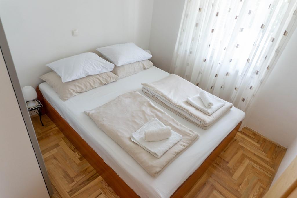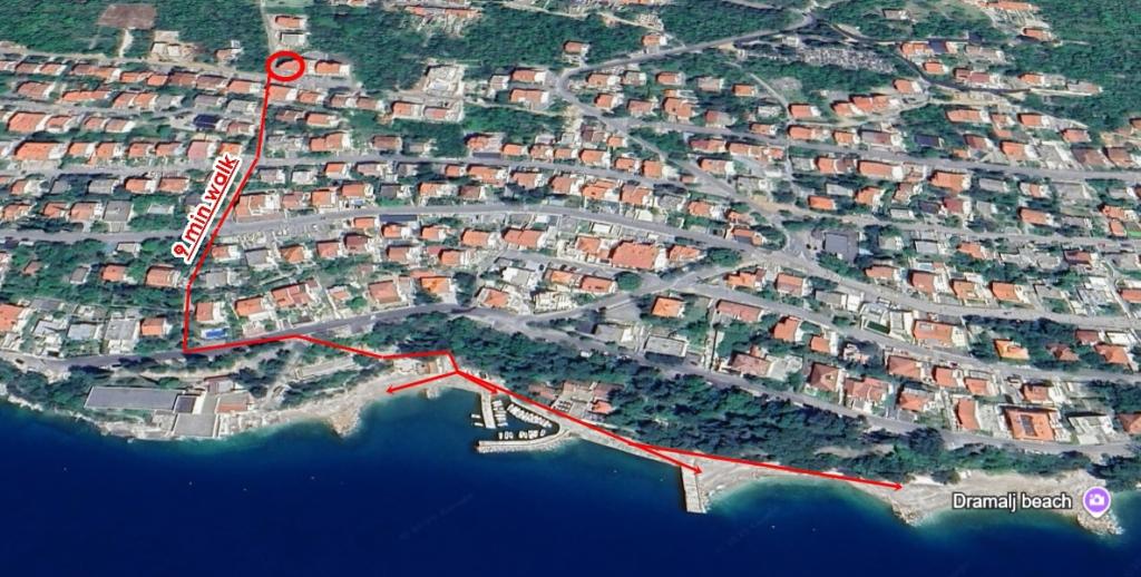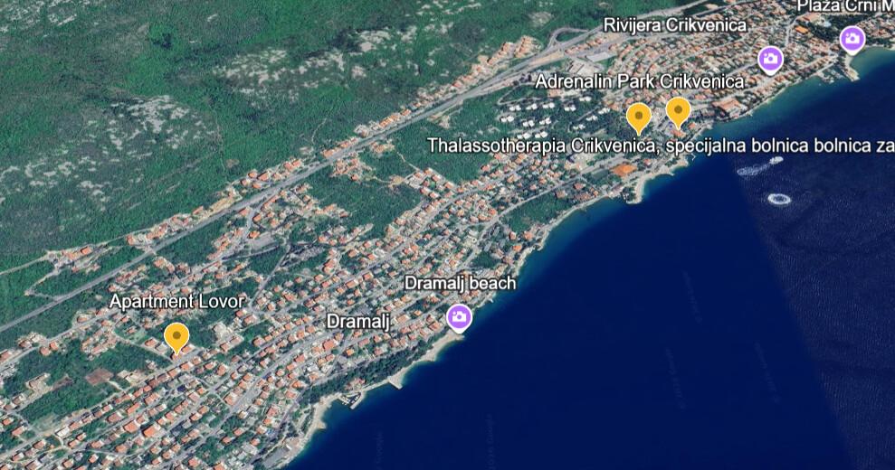 Appartement Lovor (31m²), begane grond van woongebouw, rustig gelegen in Dramalj. 450m van zee, nabij Thalassotherapia, Adrenaline Park en paden. Ideaal voor 2-3 volwassenen of gezin. Bevat slaapkamer (160x200), badkamer, terras en uitgeruste keuken (koelkast, fornuis, magnetron, waterkoker, koffiezetter, broodrooster, keukengerei) met woonkamer (TV, slaapbank 75x200/150x200). Airco, gratis Wi-Fi en privéparkeerplaats.