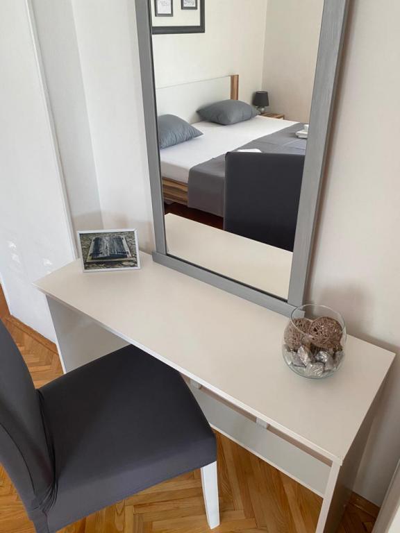 Appartement voor 4-5 personen en appartement voor 2 personen in een gezinswoning in Dramalj. Het appartement voor 4 personen beschikt over twee ruime slaapkamers, een keuken met eethoek, een badkamer, een balkon en een terras met uitzicht op zee. Het appartement is voorzien van wifi, tv en airconditioning. Het appartement voor 2 personen bestaat uit een slaapkamer, keuken, badkamer en terras. Ook dit appartement is voorzien van wifi, tv en airconditioning. Een winkel bevindt zich op 50 meter afstand. De accommodatie ligt op 130 meter van de kust, waar u kunt kiezen uit betonnen, kiezel-, zand- of rotsstranden, sport- en recreatiemogelijkheden en diverse restaurants. Het centrum van Crikvenica ligt op 3 km afstand, de stad Rijeka op 30 km en de luchthaven van Rijeka op 20 km. Huisdieren zijn niet toegestaan in het appartement.