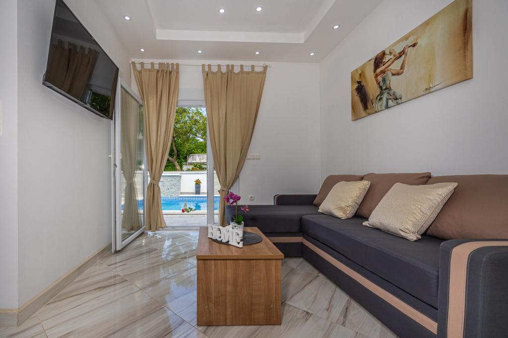 Het familiehuis met appartementen is gelegen in Dramalj, een rustig deel van de Crikvenica Riviera, op slechts 400 meter van de boulevard aan zee die Dramalj met Crikvenica verbindt. Appartementen A2 + 2 bestaan uit een ingerichte keuken met eethoek, badkamer, 2 slaapkamers, een met een tweepersoonsbed en de andere met een bed voor 2 personen en een balkon met uitzicht op zee. Appartementen A3 bestaan uit een ingerichte keuken met een eethoek, een badkamer, 1 slaapkamer met een tweepersoonsbed en een eenpersoonsbed en een balkon met uitzicht op zee. Appartement A5 bestaat uit een ingerichte keuken met woonkamer, 2 slaapkamers, een met een tweepersoonsbed en de andere met 3 eenpersoonsbedden. Het appartement heeft een ruim terras van 20m2 met direct zeezicht. Alle appartementen zijn voorzien van airconditioning, tv en wifi Naast het huis is er een eigen parkeerplaats voor gasten en in de tuin een barbecue. .
