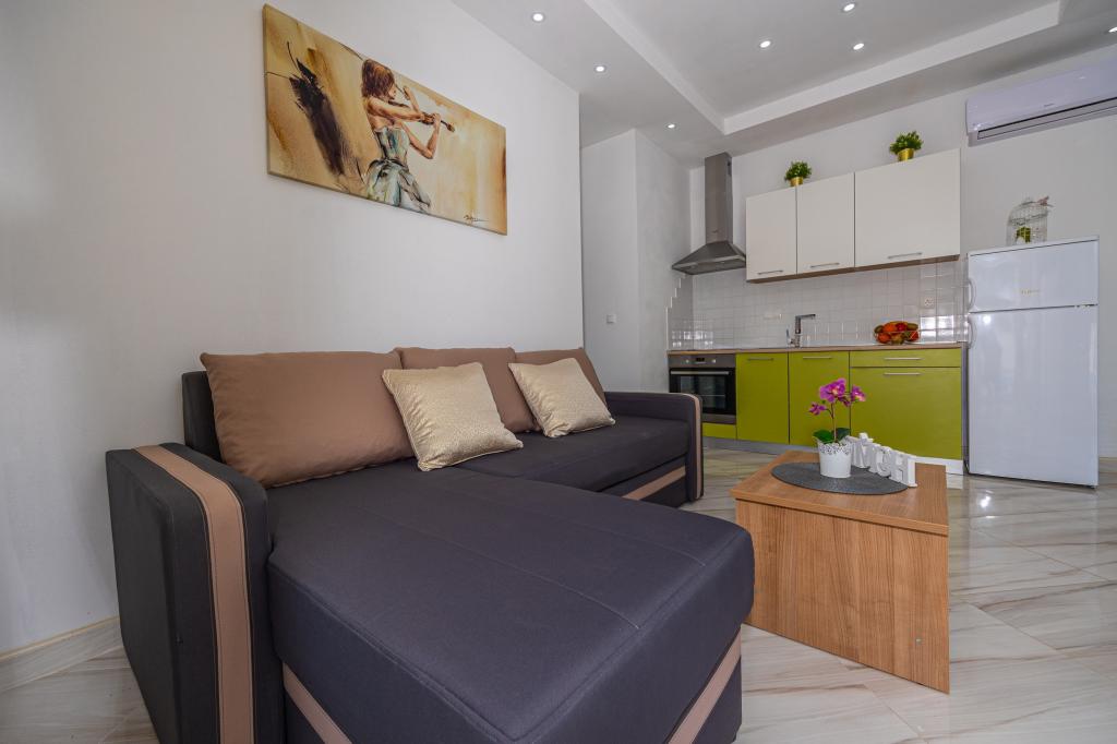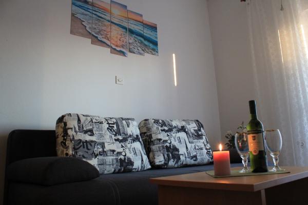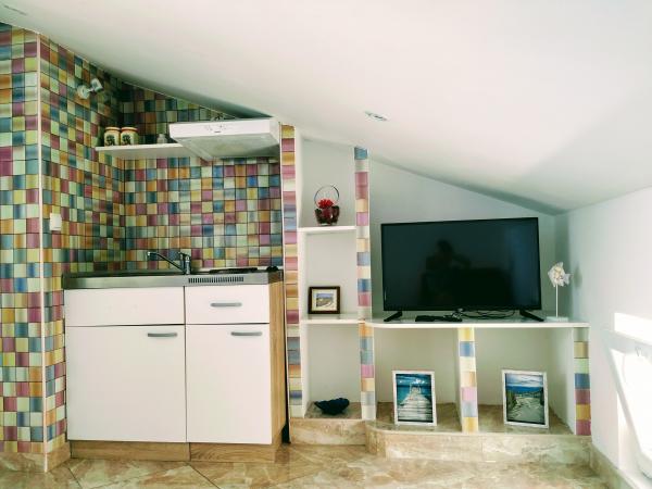 Appartement faciliteiten, uitzicht op zee, parkeerplaats, gastheren erg aardig en als je hulp nodig hebt tot je beschikking, .. dicht bij het strand, schone zee en schone stranden .. onze vakantie was geweldig en als je ze kiest. je zult niet verkeerd gaan .., rust en stilte, rustig deel van de stad