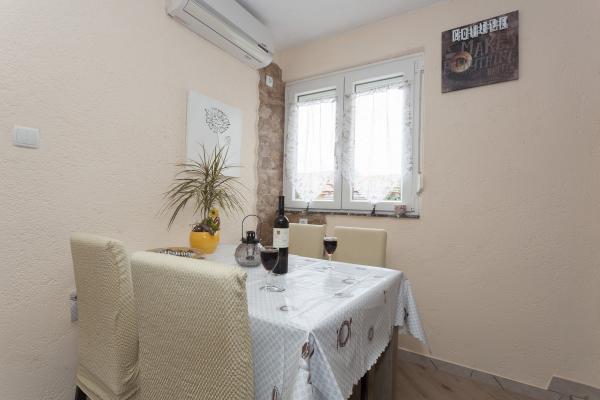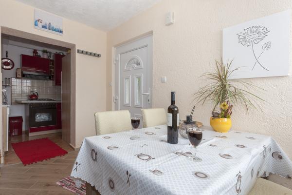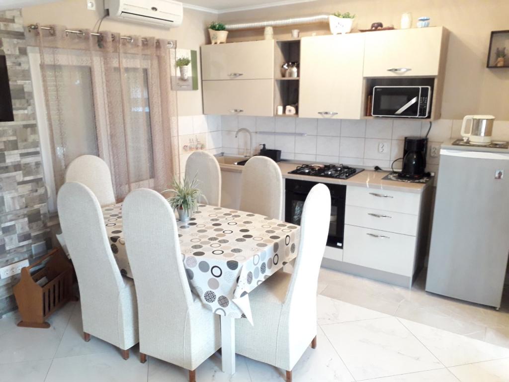 Het appartement ligt op een rustige plek en u heeft ongeveer 10-15 minuten naar de zee. In het appartement heeft u 2 goed ingerichte kamers met een tweepersoonsbed en kasten. U heeft ook een badkamer met een grote douche, haardroger, spiegel, enz. In de keuken waren veel gereedschap, zodat u alles kunt koken wat u wilt. We hadden ook een plek met een tafel op het terras met uitzicht op zee. De gastheren Jasnica en haar man waren erg vriendelijk en coöperatief. In het huis woont ook heel mooie kleine hond Maki. Dus we zijn heel erg dankbaar voor Jasnica voor een goede accommodatie en een aantal goede tips.