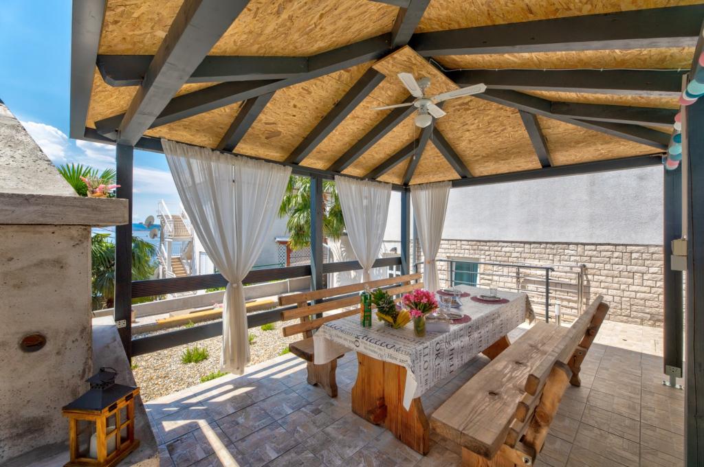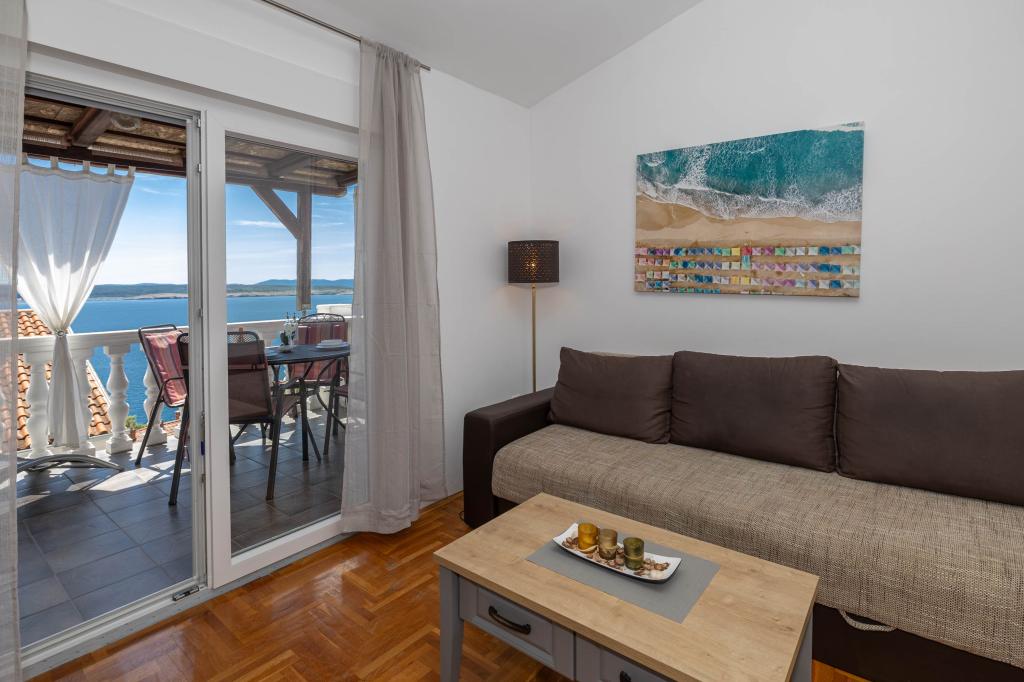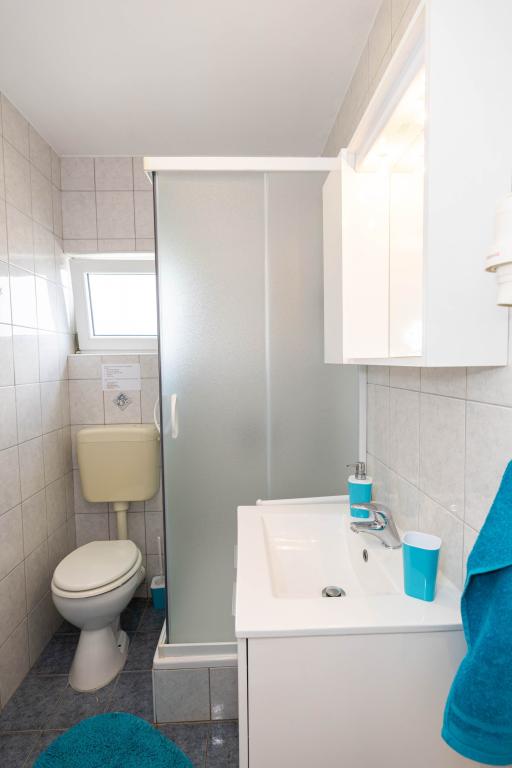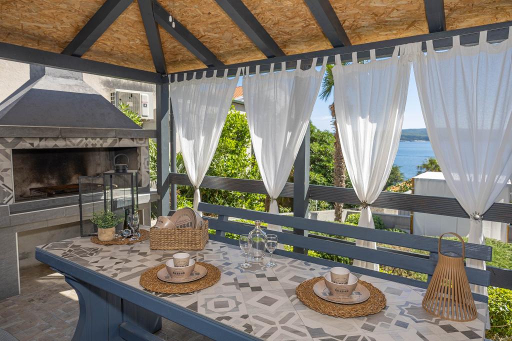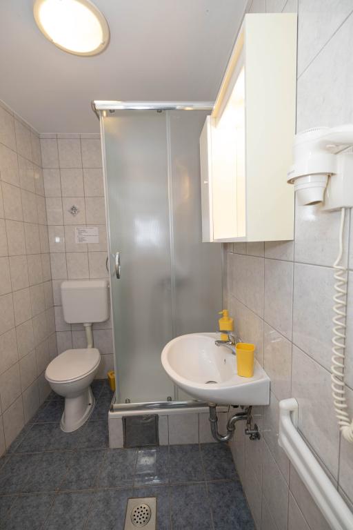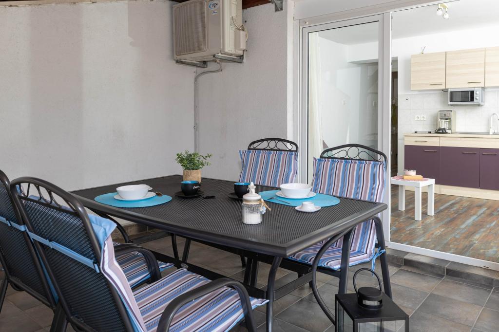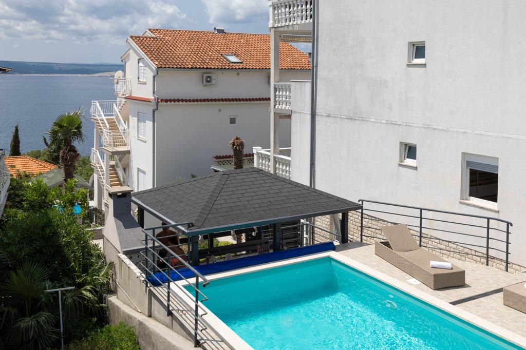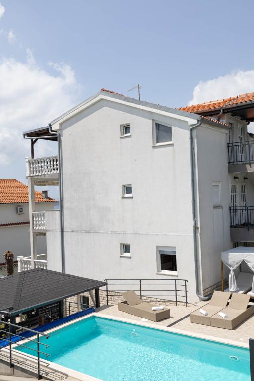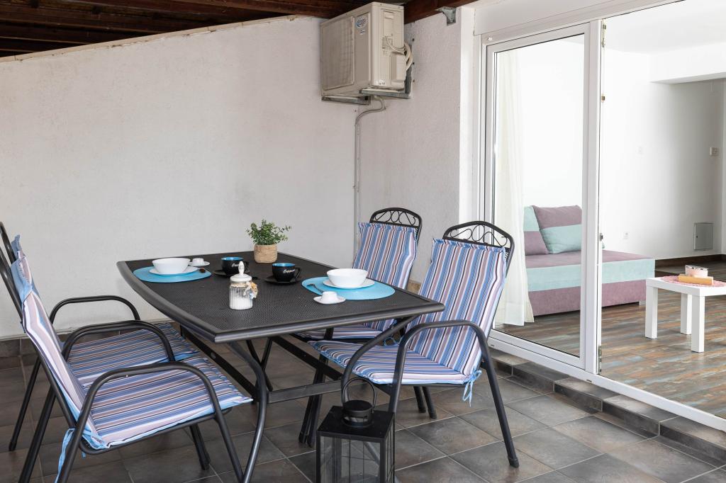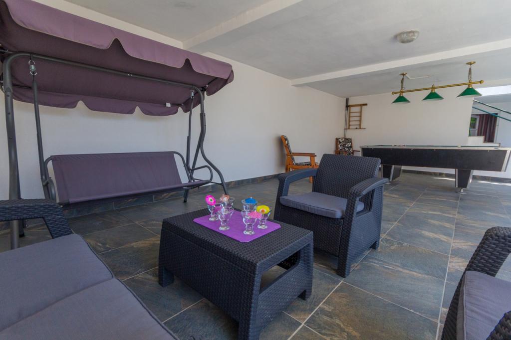 Onze accommodatie ligt op de tweede rij aan zee en is ideaal voor een ontspannen zomervakantie. Het huis beschikt over zes modern ingerichte appartementen met uitzicht op zee, die zijn uitgerust voor een aangenaam verblijf. Alle appartementen beschikken over een ingerichte keuken met waterkoker, koffiezetapparaat, broodrooster en magnetron. De badkamers zijn voorzien van een douche, toilet en haardroger. De tuin biedt talrijke faciliteiten voor ontspanning en vermaak. Er is een zwembad van 7 x 3,5 m met ligstoelen, een hydromassagebad, een douche en een prieel met een barbecue. De barbecue is uitgerust met een spoelbak en alle benodigde keukengerei. Het prieel beschikt over een grote tafel met twee banken voor grotere gezelschappen. In het overdekte gedeelte van de tuin bevinden zich een pooltafel, darts, bordspellen en een kleine bibliotheek met boeken. Er is een overdekte parkeerplaats voor het huis, één parkeerplaats per appartement. De appartementen zijn als volgt ingedeeld: A1 en A2 op de begane grond, A3 op de eerste verdieping, A5 op de tweede en A7 en A8 op de derde verdieping. Welkom!!!