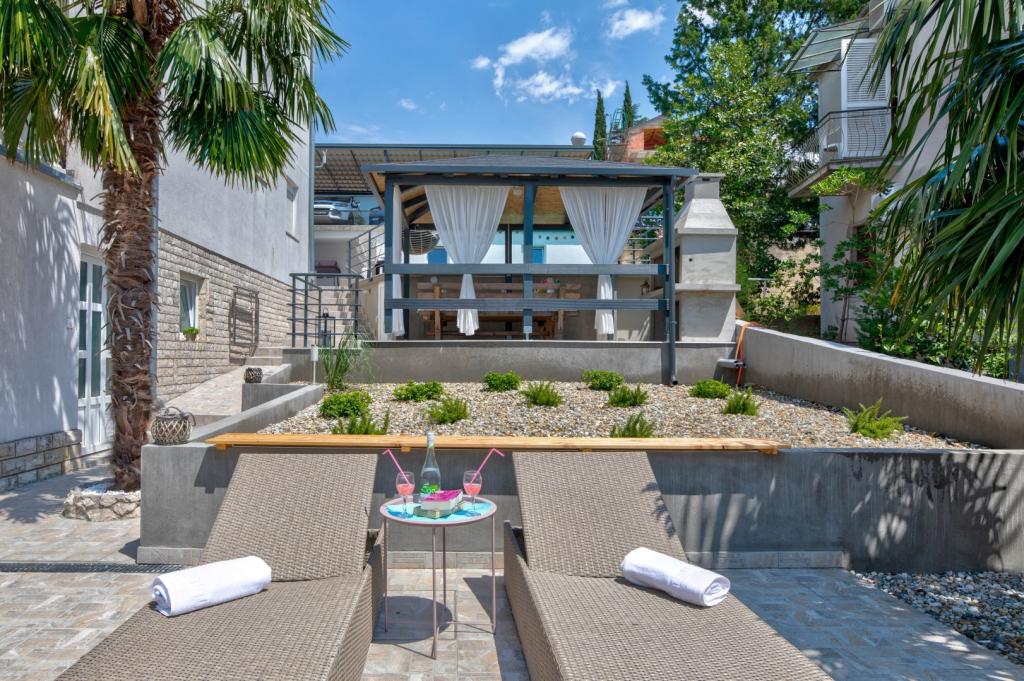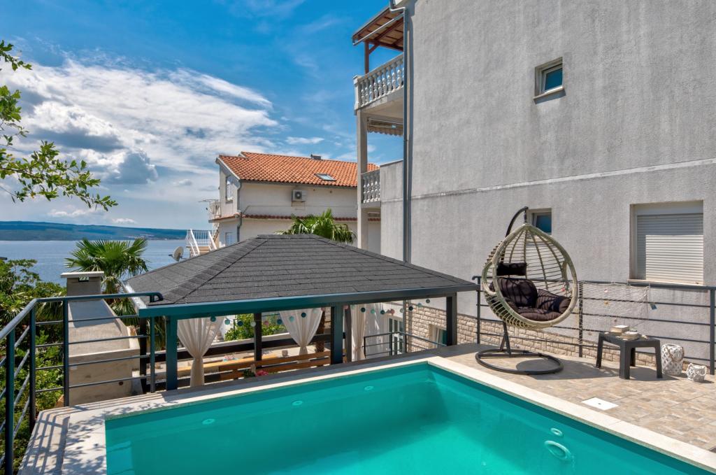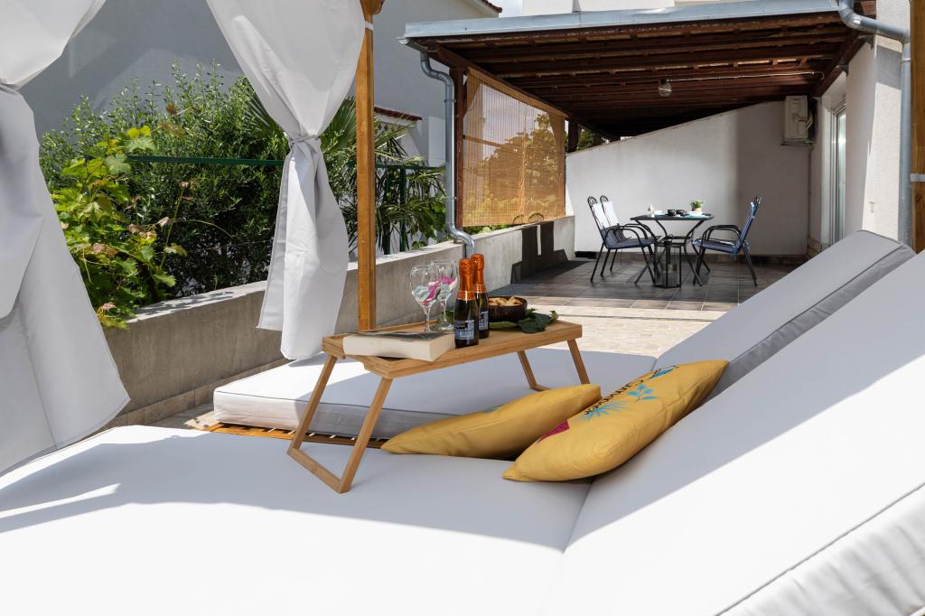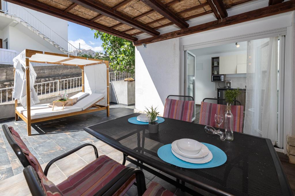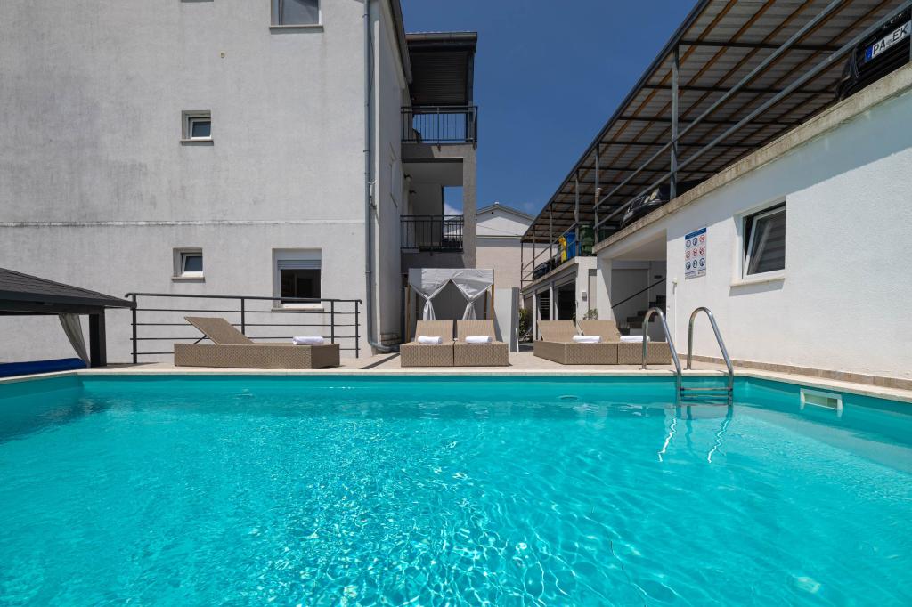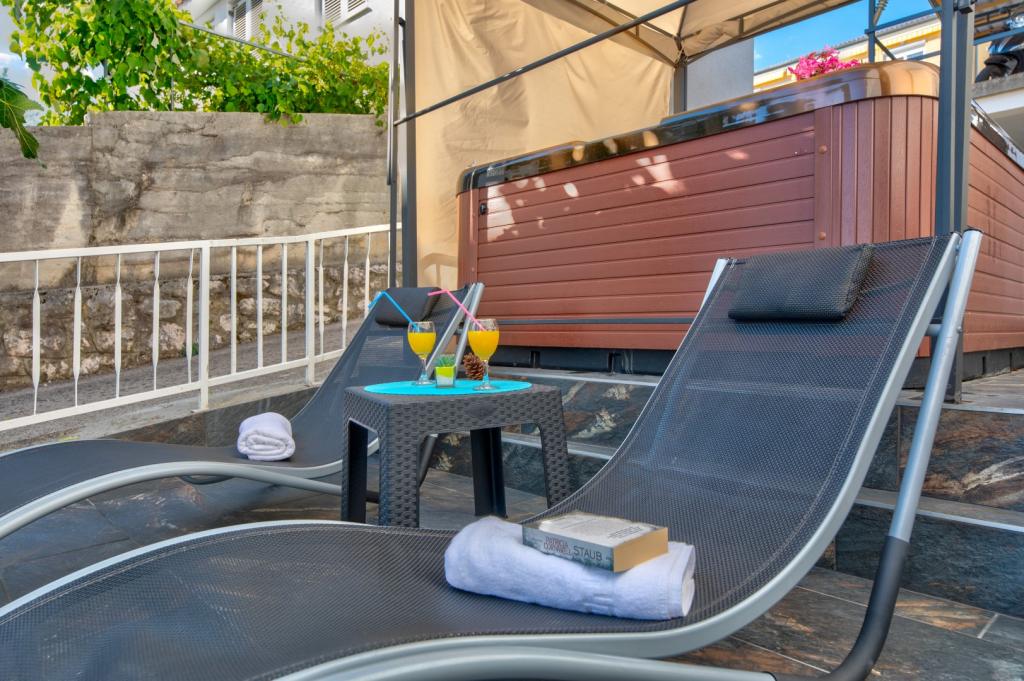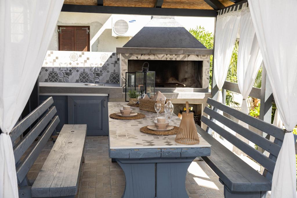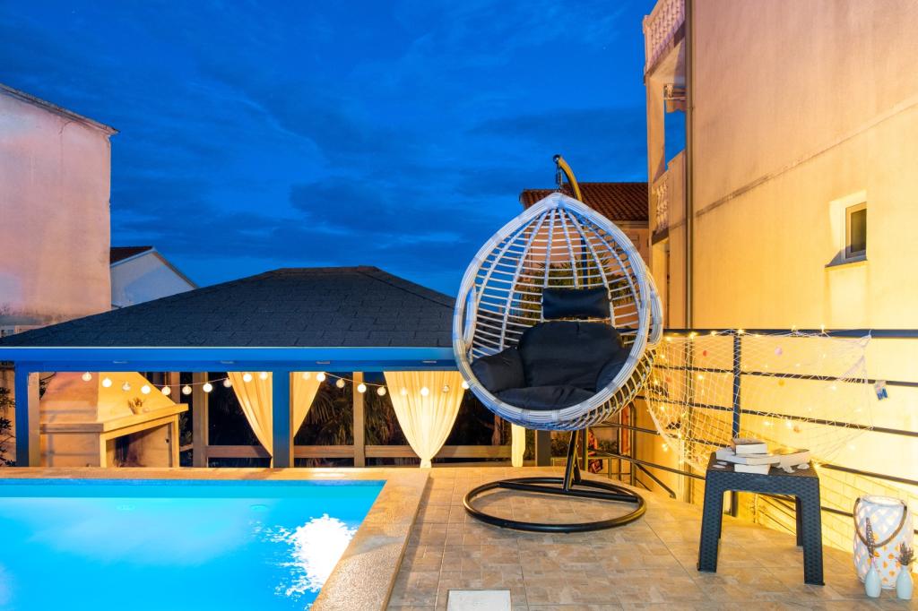 Onze accommodatie ligt op de tweede rij aan zee en is ideaal voor een ontspannen zomervakantie. Het huis beschikt over zes modern ingerichte appartementen met uitzicht op zee, die zijn uitgerust voor een aangenaam verblijf. Alle appartementen beschikken over een ingerichte keuken met waterkoker, koffiezetapparaat, broodrooster en magnetron. De badkamers zijn voorzien van een douche, toilet en haardroger. De tuin biedt talrijke faciliteiten voor ontspanning en vermaak. Er is een zwembad van 7 x 3,5 m met ligstoelen, een hydromassagebad, een douche en een prieel met een barbecue. De barbecue is uitgerust met een spoelbak en alle benodigde keukengerei. Het prieel beschikt over een grote tafel met twee banken voor grotere gezelschappen. In het overdekte gedeelte van de tuin bevinden zich een pooltafel, darts, bordspellen en een kleine bibliotheek met boeken. Er is een overdekte parkeerplaats voor het huis, één parkeerplaats per appartement. De appartementen zijn als volgt ingedeeld: A1 en A2 op de begane grond, A3 op de eerste verdieping, A5 op de tweede en A7 en A8 op de derde verdieping. Welkom!!!