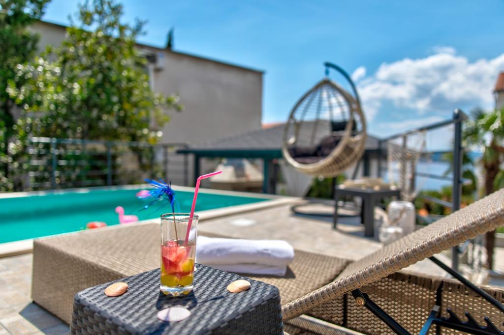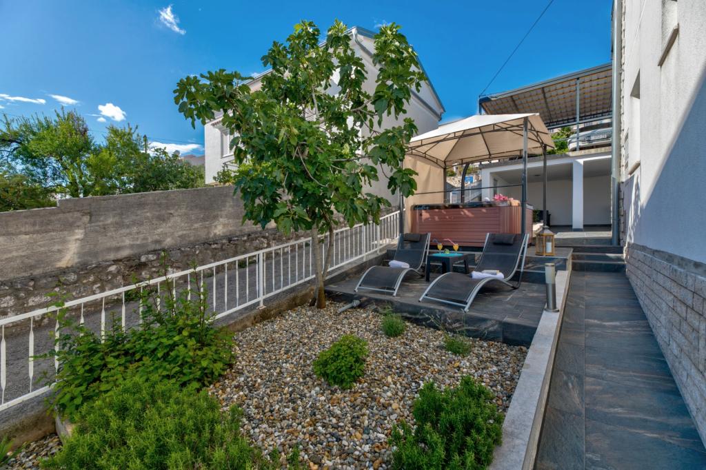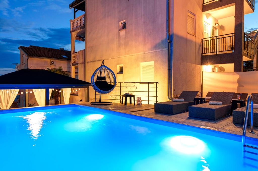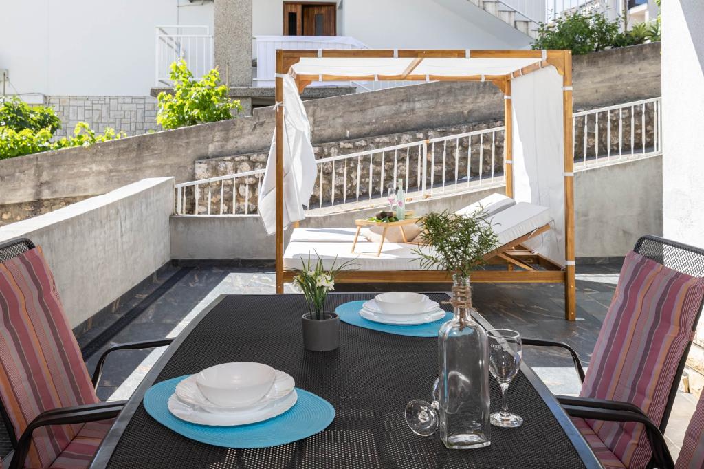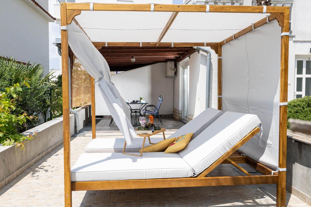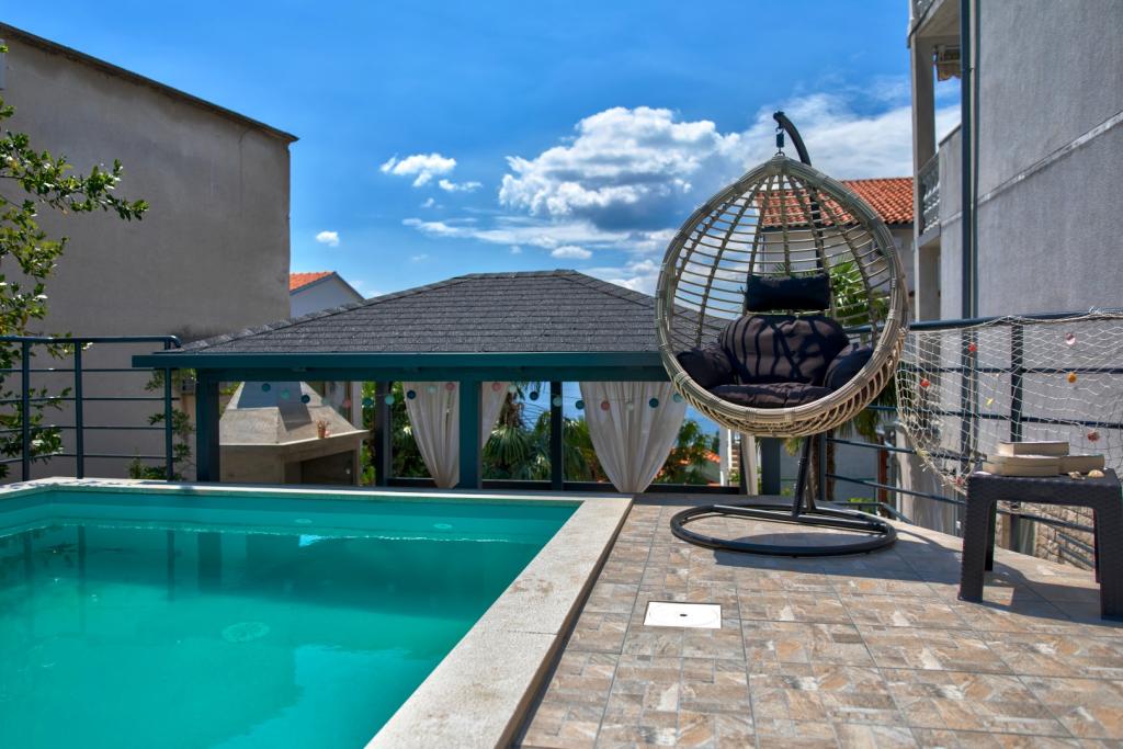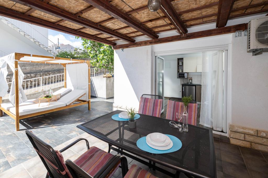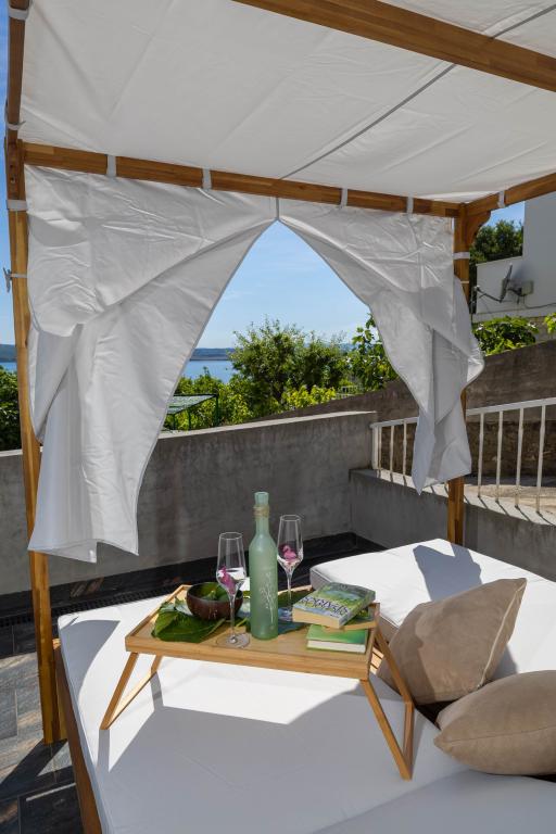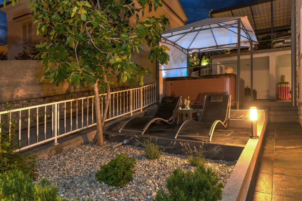 Onze accommodatie ligt op de tweede rij aan zee en is ideaal voor een ontspannen zomervakantie. Het huis beschikt over zes modern ingerichte appartementen met uitzicht op zee, die zijn uitgerust voor een aangenaam verblijf. Alle appartementen beschikken over een ingerichte keuken met waterkoker, koffiezetapparaat, broodrooster en magnetron. De badkamers zijn voorzien van een douche, toilet en haardroger. De tuin biedt talrijke faciliteiten voor ontspanning en vermaak. Er is een zwembad van 7 x 3,5 m met ligstoelen, een hydromassagebad, een douche en een prieel met een barbecue. De barbecue is uitgerust met een spoelbak en alle benodigde keukengerei. Het prieel beschikt over een grote tafel met twee banken voor grotere gezelschappen. In het overdekte gedeelte van de tuin bevinden zich een pooltafel, darts, bordspellen en een kleine bibliotheek met boeken. Er is een overdekte parkeerplaats voor het huis, één parkeerplaats per appartement. De appartementen zijn als volgt ingedeeld: A1 en A2 op de begane grond, A3 op de eerste verdieping, A5 op de tweede en A7 en A8 op de derde verdieping. Welkom!!!