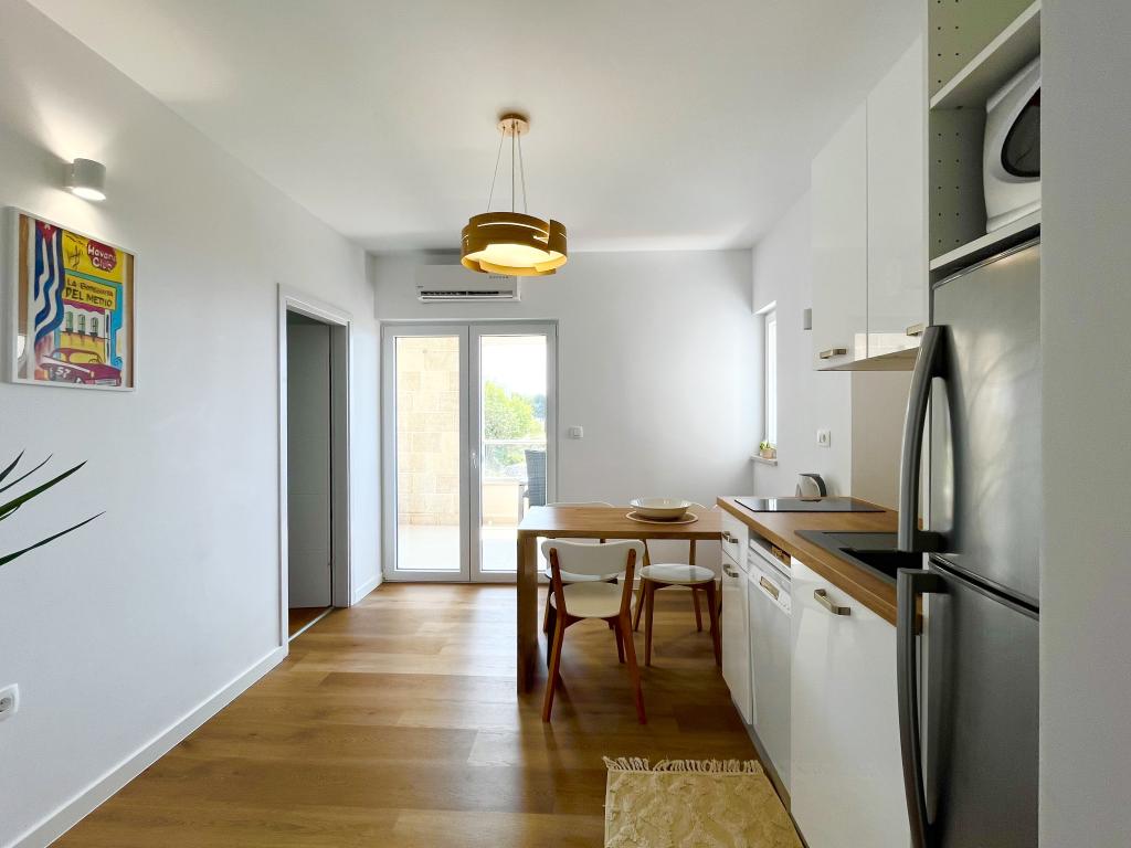 Moderne appartementen en arrangementen. Heel proper. Comfortabele bedden. Groot terras en panoramisch uitzicht. Geweldig bedankt.