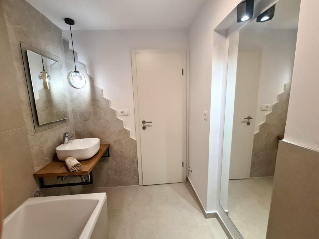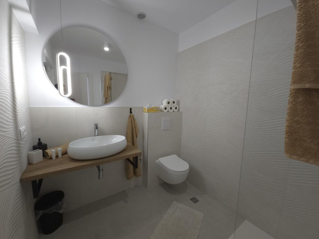 Prachtig, schoon en aangenaam appartement met 2 slaapkamers, zoals geadverteerd. De ingang was vanuit de tuin, waar je met de auto naartoe kon rijden, een paar treden direct naar het terras. Parkeren bijna bij het appartement. Het terras was erg mooi, gewoon groot, de paddleboard paste er perfect. De zon scheen er 's ochtends, aangename schaduw in de middag. De bedden in beide slaapkamers waren erg comfortabel en schoon. De keuken was ook schoon, de vaatwasser was functioneel en schoon. De vaat was schoon, maar door het gebruik van de vaatwasser was er te weinig, deze zou bijgevuld moeten worden. De badkamer was mooi, ruim en schoon. Het strand was op ongeveer 5 minuten lopen van het appartement, weinig mensen, het water was schoon, kleine kiezels, geen zee-egels, je kon het zonder schoenen doen. Iets verderop waren er nog 2 andere stranden (Soline en Vodice), waar iets meer mensen waren. Het restaurant en de winkel waren op ongeveer 5 minuten lopen van het appartement. De gastheren waren aardig en aangenaam. We vonden Drašnica en het appartement Gabriela erg leuk, we kunnen het zeker aanbevelen!