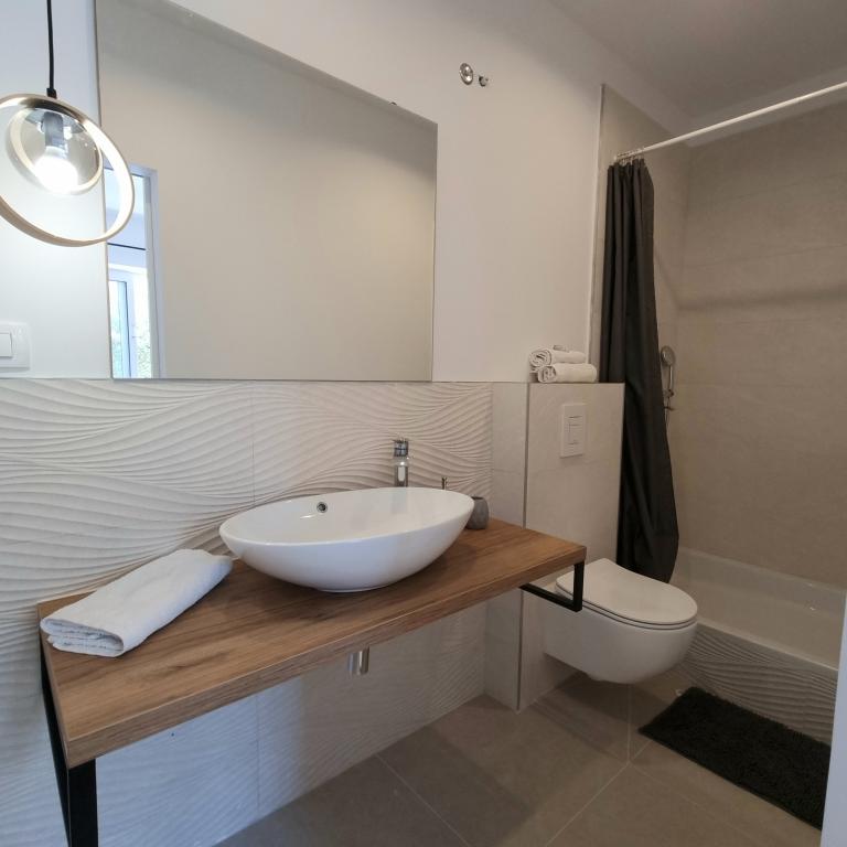 We hebben hier dit jaar onze vakantie doorgebracht met mijn gezin. We hadden geen betere keuze kunnen maken. Het appartement was gezellig, schoon en van alle gemakken voorzien. Het terras is perfect om te ontspannen, naar de golven te luisteren en de prachtige zonsondergangen te bekijken. De toegang tot het strand is via een prachtige tuin, waar je opblaasbaar speelgoed in het water kunt bewaren, zodat je ze niet elke dag naar het appartement hoeft te sjouwen. De eigenaar, haar man en haar moeder zijn erg vriendelijk, behulpzaam en aardig. Het appartementencomplex ligt op een steenworp afstand van een prachtig kiezelstrand. De zee is perfect en vol vis. We wilden allebei niet naar huis en we hopen volgend jaar terug te keren.