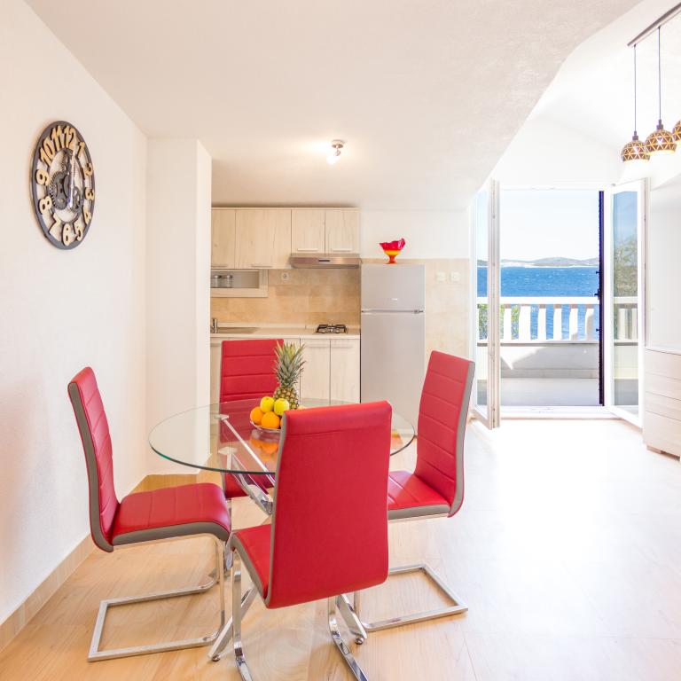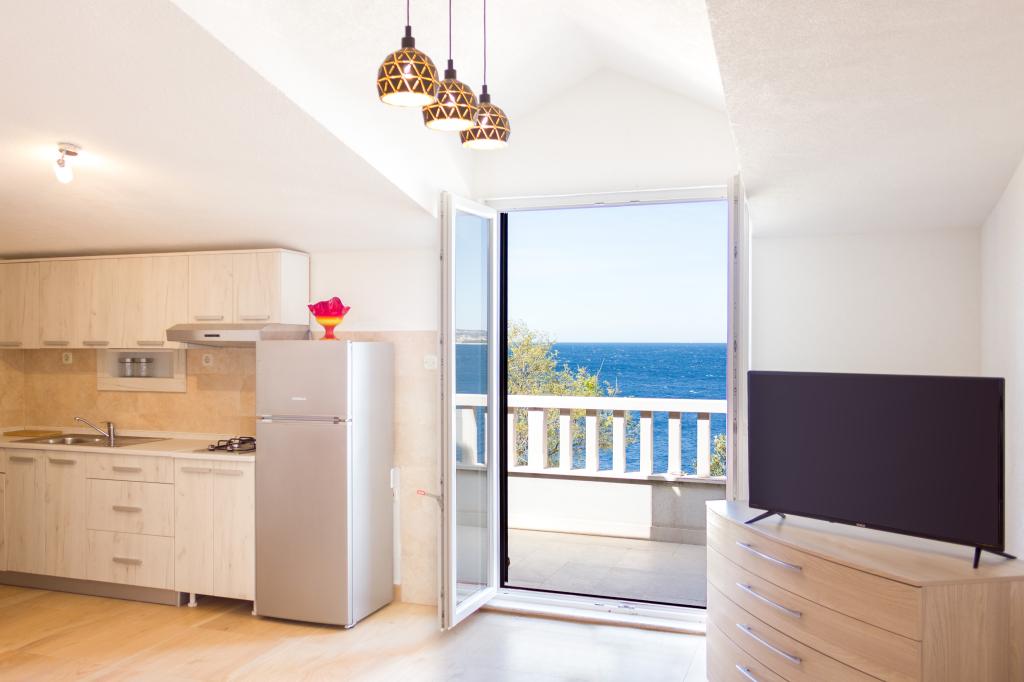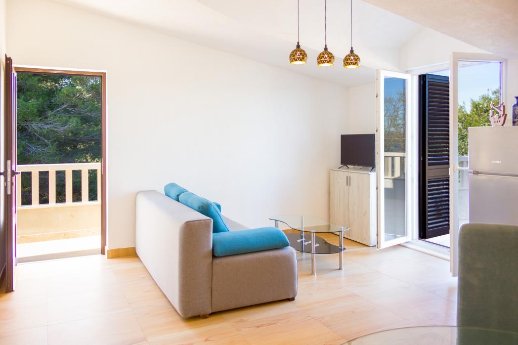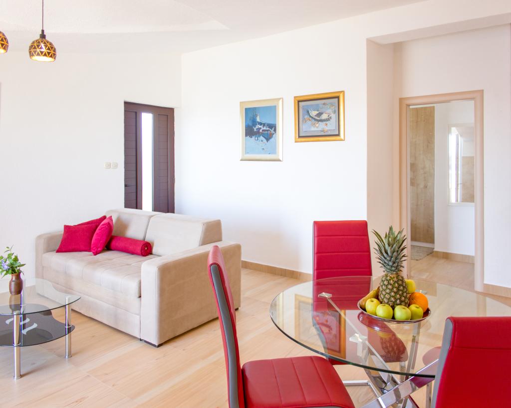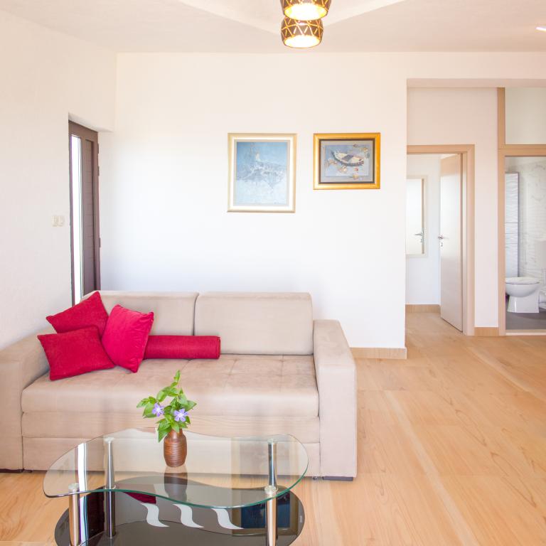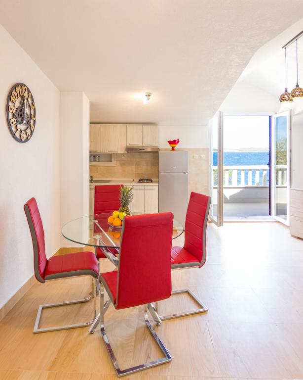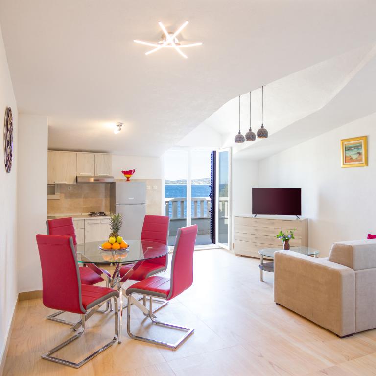 Appartementen Val en Sol liggen op het eiland Drvenik Mali, in de baai van Mala Rina, aan zee, op 70 meter van de kust. De appartementen op het eiland Drvenik Mali bestaan uit een ingerichte keuken, eetkamer, woonkamer met tv en slaapbank, slaapkamer met ventilator, terras met prachtig uitzicht en badkamer met haardroger. Beide appartementen hebben uitzicht op zee. Het is mogelijk om de gehele verdieping te huren. Appartementen Val en Sol op Drvenik Mali bieden gratis parkeergelegenheid, barbecue en gratis internet. Op het eiland Drvenik Mali vindt u een winkel met beperkte inhoud, een restaurant en een café aan het strand. Daarom raden wij u ten zeerste aan om zelf eten, drinken en andere benodigdheden mee te nemen.