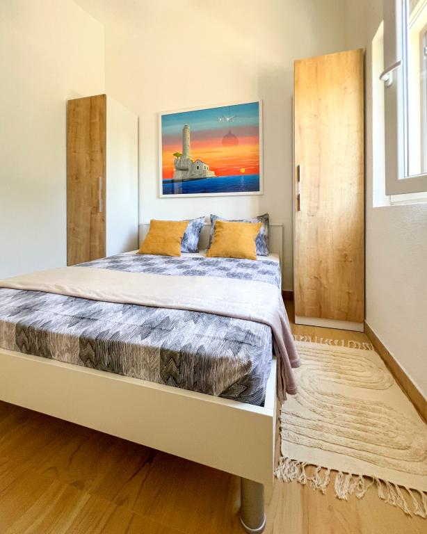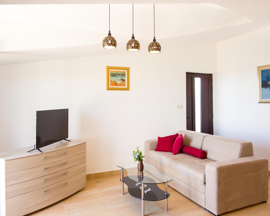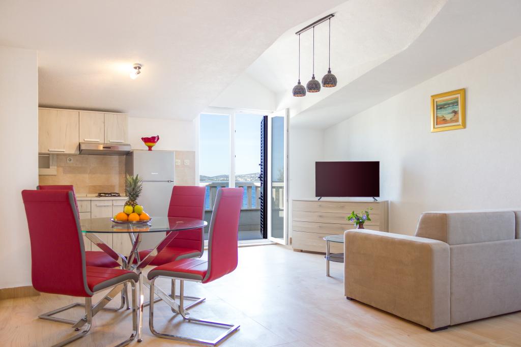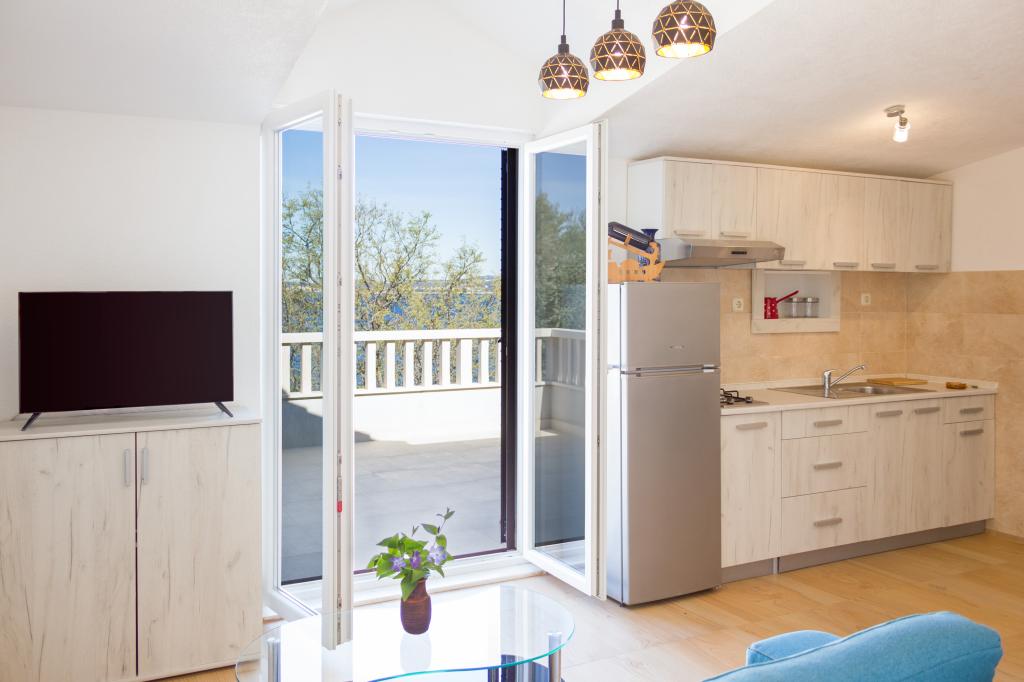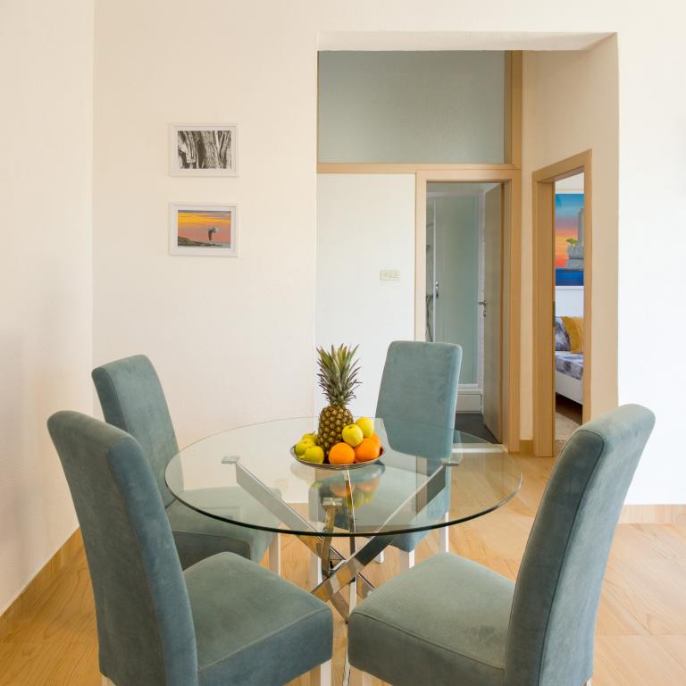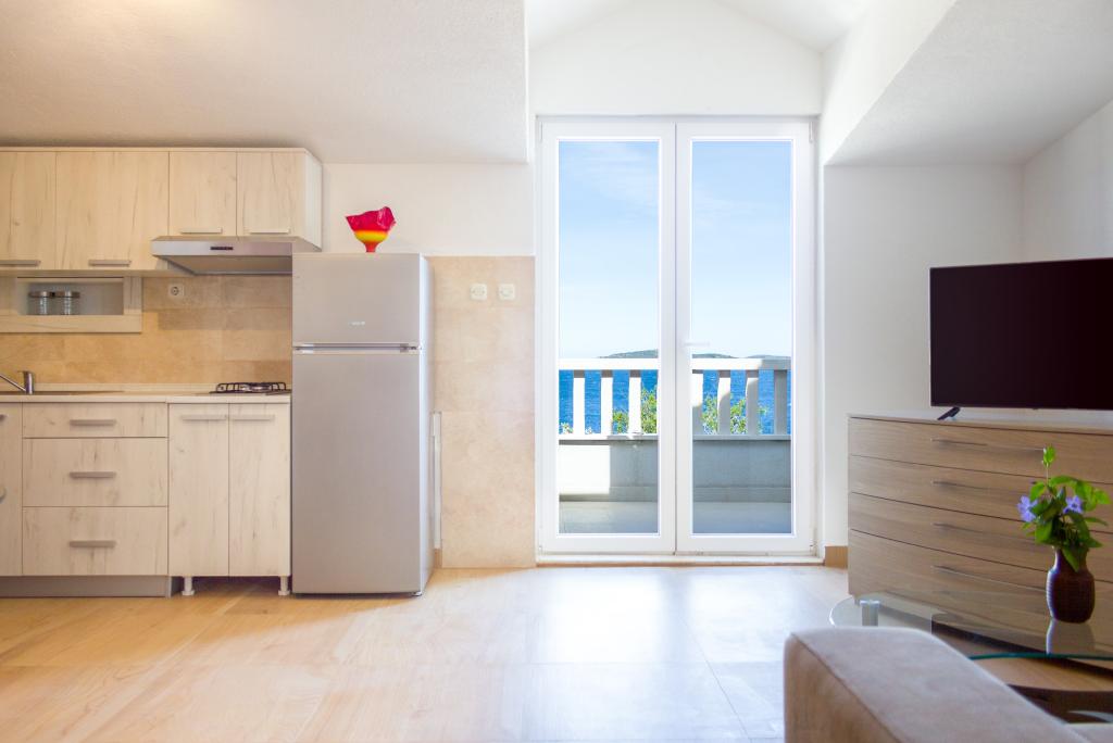 Appartementen Val en Sol liggen op het eiland Drvenik Mali, in de baai van Mala Rina, aan zee, op 70 meter van de kust. De appartementen op het eiland Drvenik Mali bestaan uit een ingerichte keuken, eetkamer, woonkamer met tv en slaapbank, slaapkamer met ventilator, terras met prachtig uitzicht en badkamer met haardroger. Beide appartementen hebben uitzicht op zee. Het is mogelijk om de gehele verdieping te huren. Appartementen Val en Sol op Drvenik Mali bieden gratis parkeergelegenheid, barbecue en gratis internet. Op het eiland Drvenik Mali vindt u een winkel met beperkte inhoud, een restaurant en een café aan het strand. Daarom raden wij u ten zeerste aan om zelf eten, drinken en andere benodigdheden mee te nemen.