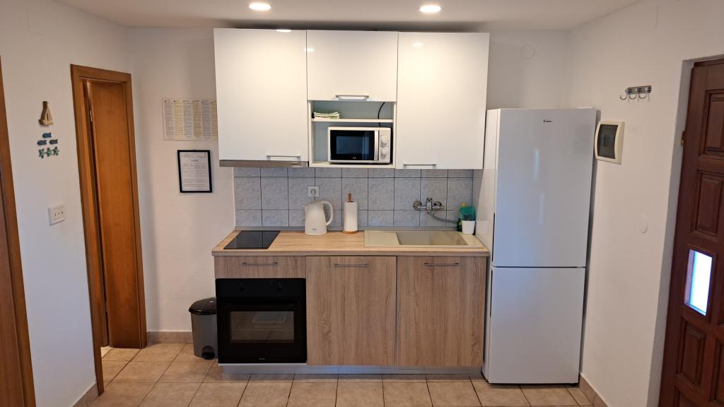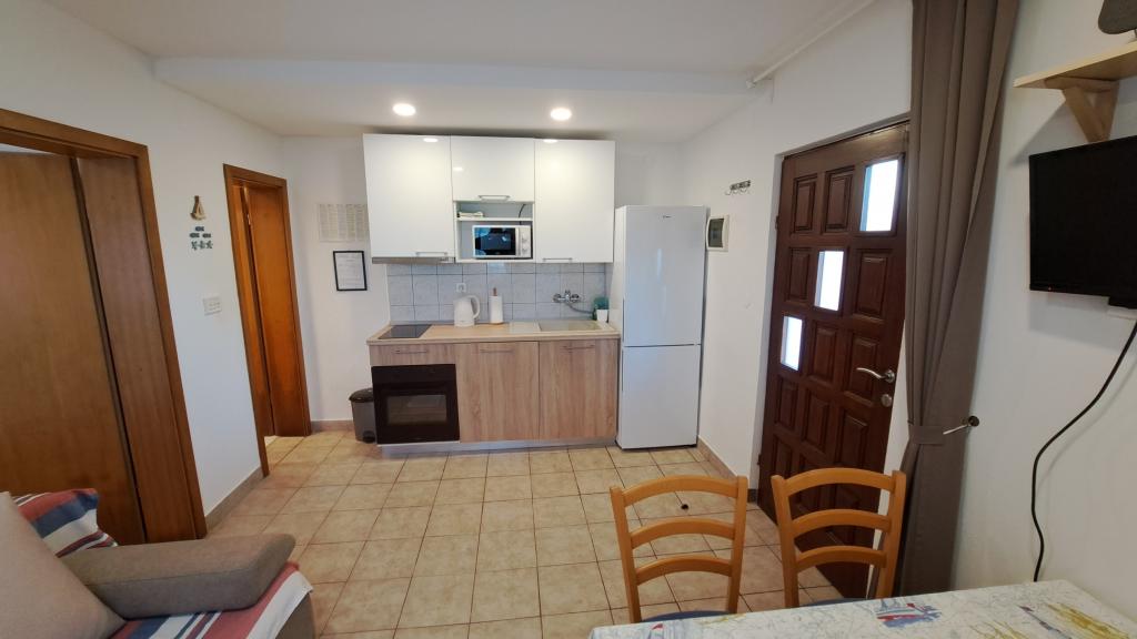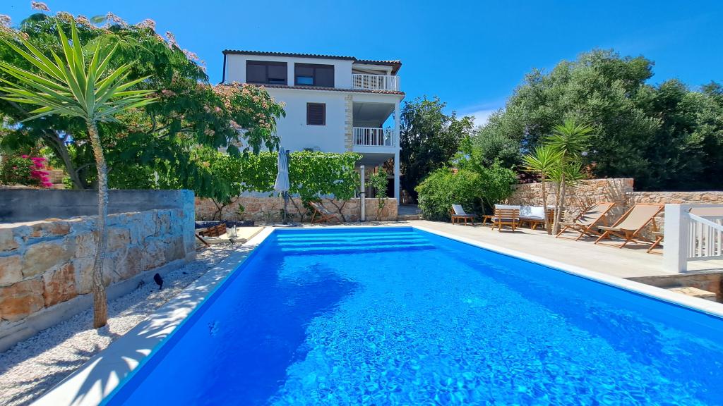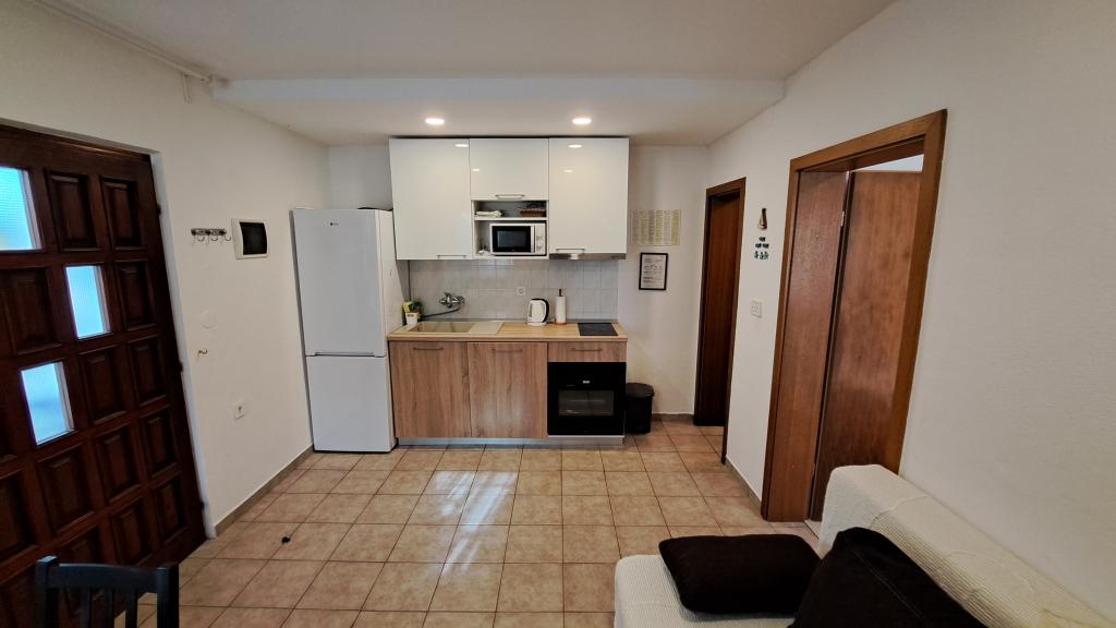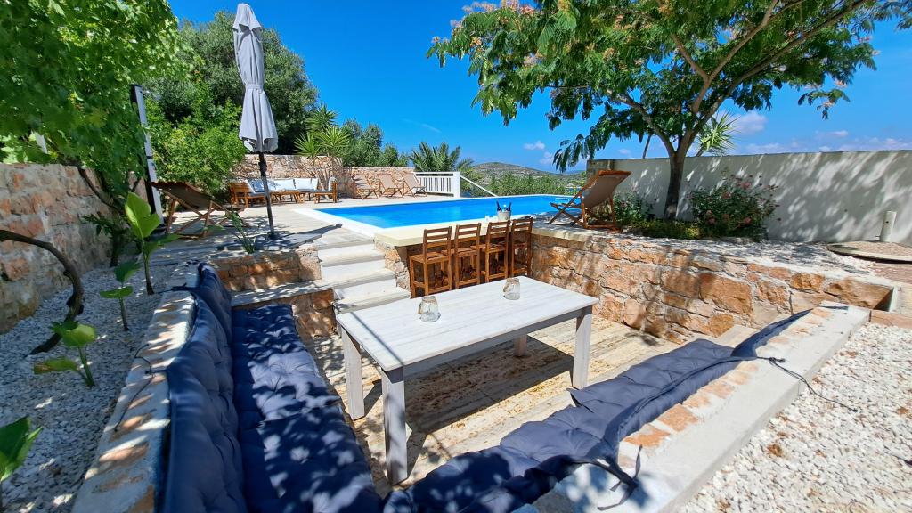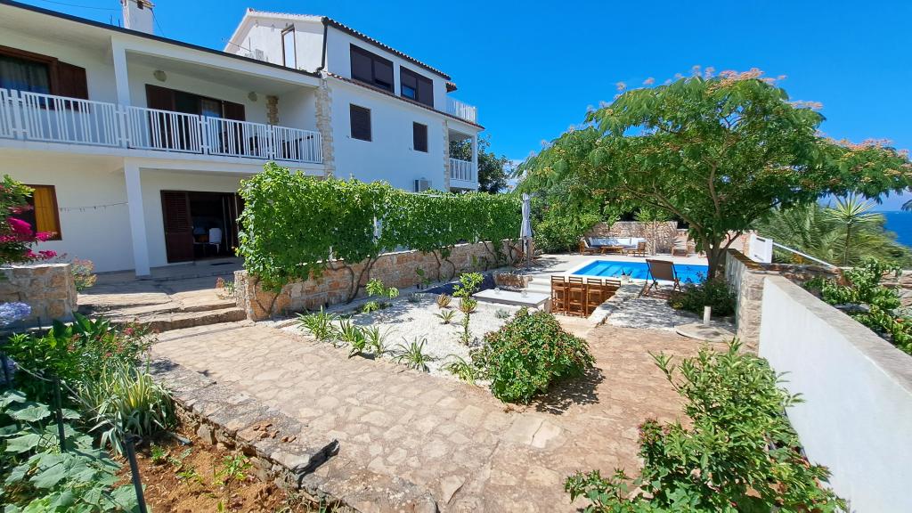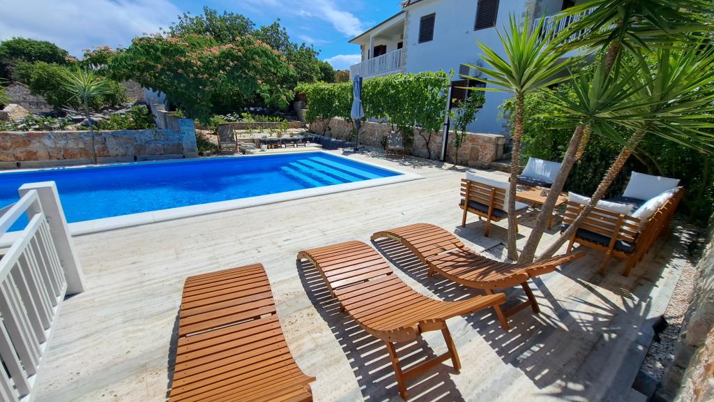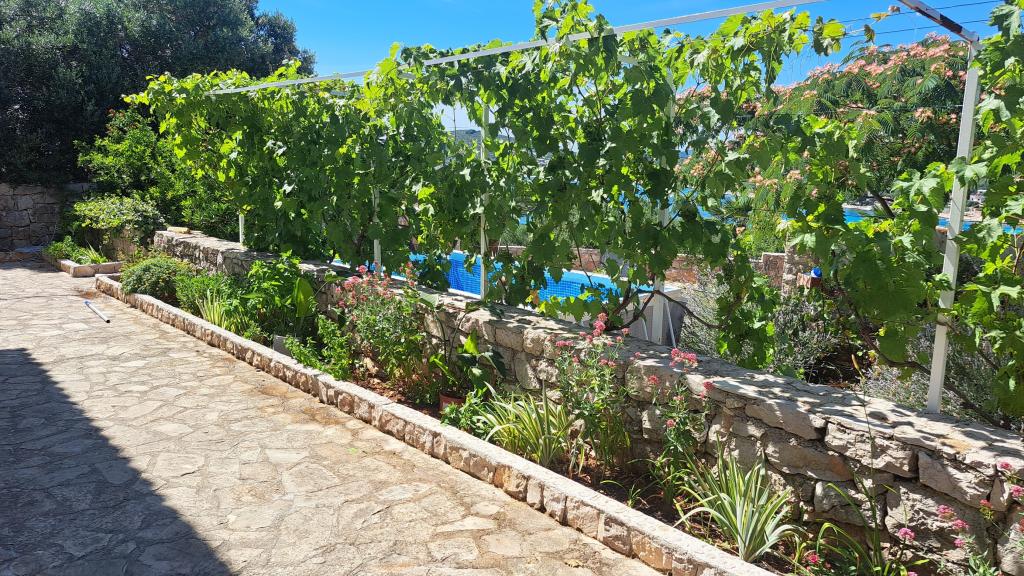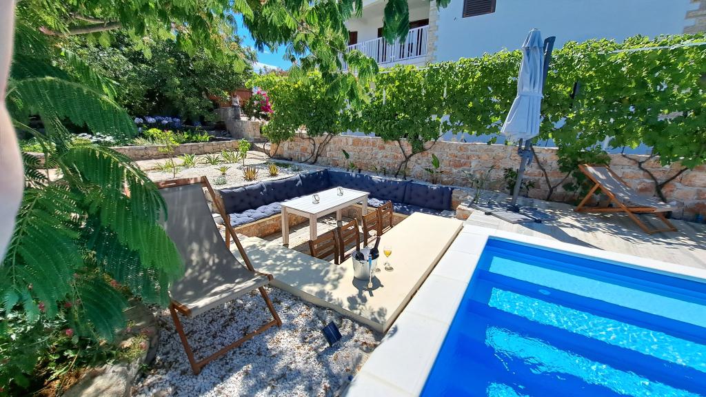 Apartments Villa Knez biedt moderne en volledig uitgeruste appartementen met zwembad, barbecue en een aangename buitenkant voor bijeenkomsten. Drvenik Mali (Ploča) is een eiland waar de tijd heeft stilgestaan. Het eiland is tam, de kust is toegankelijk zodat je het hele eiland rond kunt zwemmen. Het is wenselijk voor degenen die verlangen naar ongerepte natuur, schone zee, prachtige stranden, nachtduiken en ontspanning ver van de bewoonde wereld. Het is de juiste plek voor moderne Robinsons. Drvenik Mali is een centraal Dalmatisch eiland dat behoort tot de stad Trogir, op 10 zeemijl afstand. Er is drie keer per dag een veerbootverbinding. Het varen duurt 50 minuten. De vegetatie bestaat uit olijven, johannesbroodbomen, geurige en geneeskrachtige mediterrane kruiden. De winkel is bescheiden gevuld met basisartikelen en het is aan te raden om eten te kopen in Trogir. Er zijn geen discoclubs. Alles is dichtbij, het eiland leent zich uitstekend voor wandelingen. De appartementen zijn gelegen in het oude dorp Petomavar en zijn bereikbaar met de auto. Elk appartement heeft een beveiligde parkeerplaats