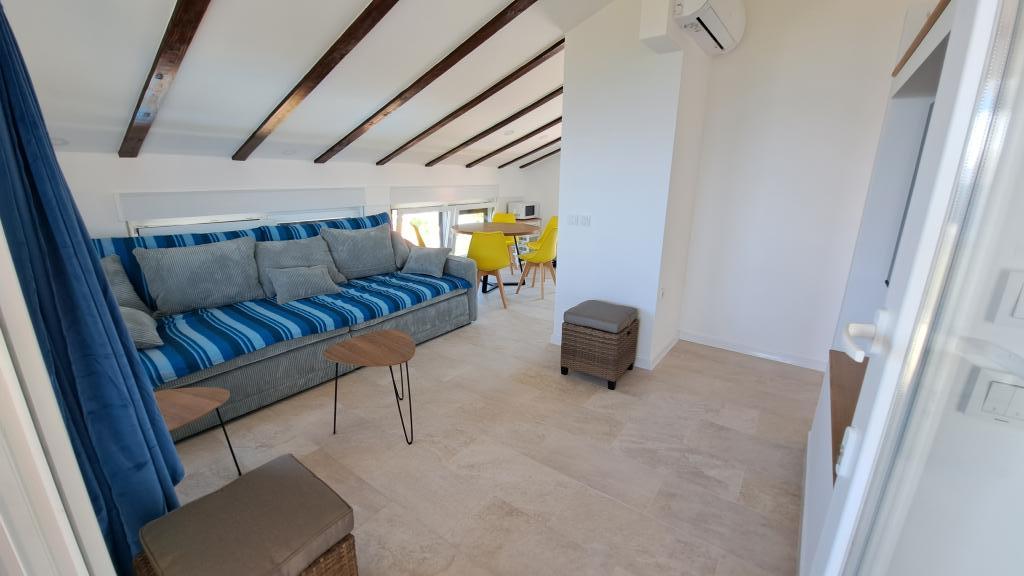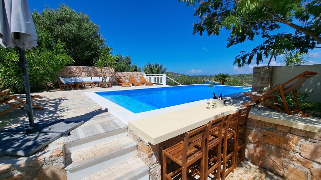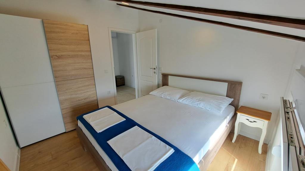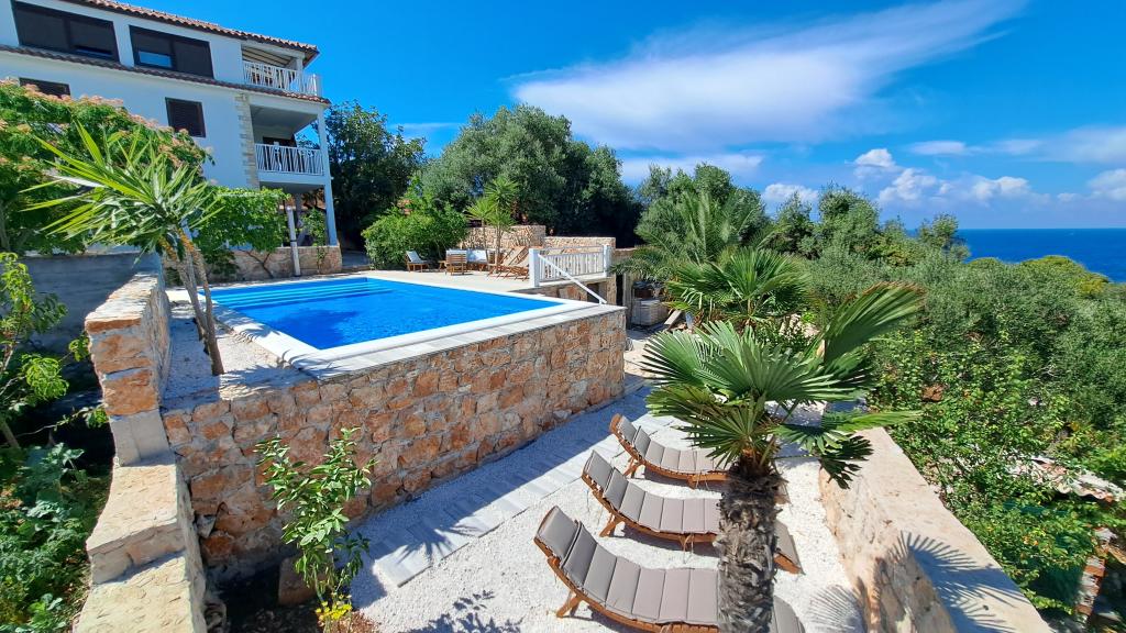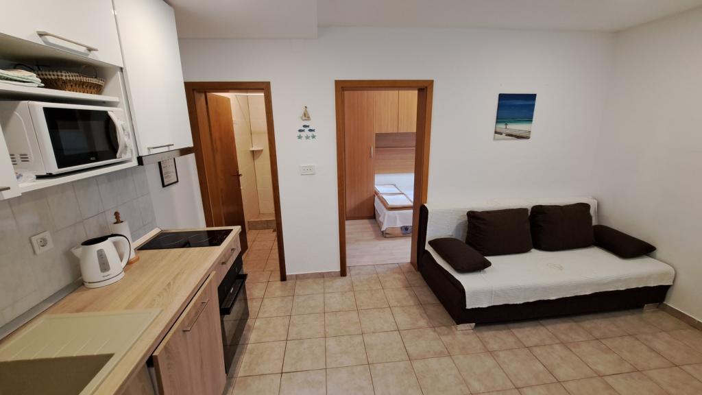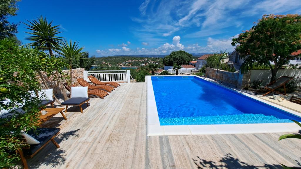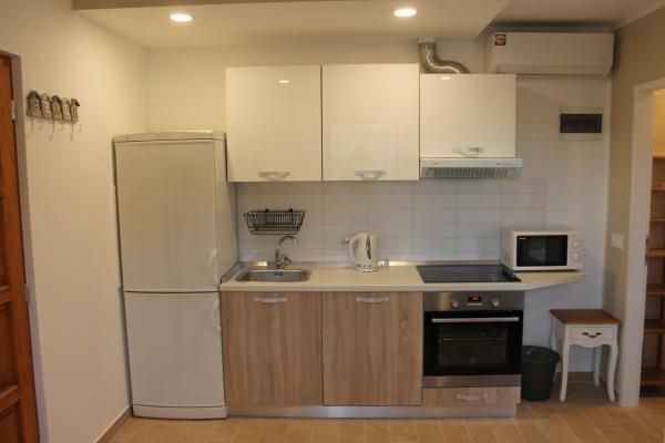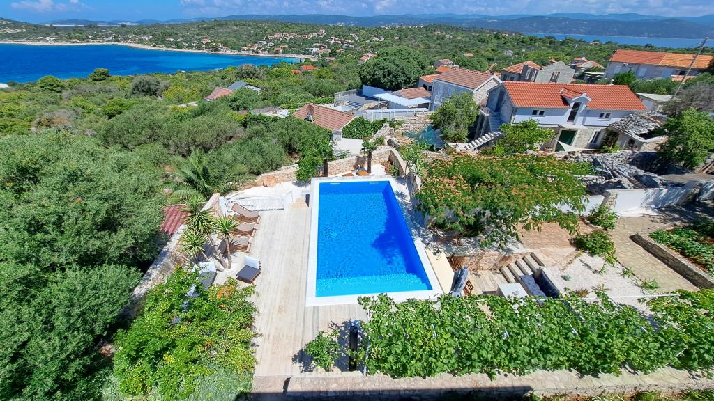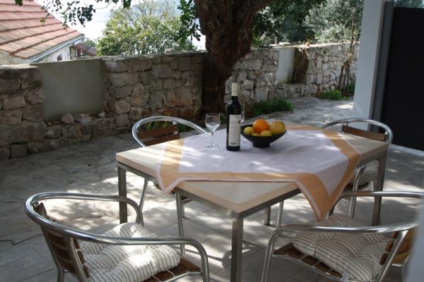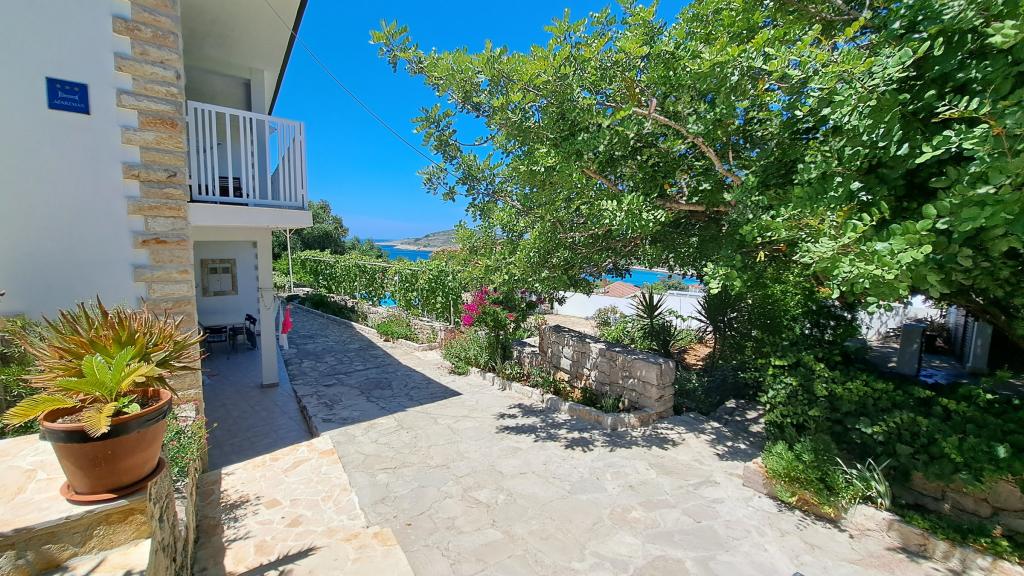 Apartments Villa Knez biedt moderne en volledig uitgeruste appartementen met zwembad, barbecue en een aangename buitenkant voor bijeenkomsten. Drvenik Mali (Ploča) is een eiland waar de tijd heeft stilgestaan. Het eiland is tam, de kust is toegankelijk zodat je het hele eiland rond kunt zwemmen. Het is wenselijk voor degenen die verlangen naar ongerepte natuur, schone zee, prachtige stranden, nachtduiken en ontspanning ver van de bewoonde wereld. Het is de juiste plek voor moderne Robinsons. Drvenik Mali is een centraal Dalmatisch eiland dat behoort tot de stad Trogir, op 10 zeemijl afstand. Er is drie keer per dag een veerbootverbinding. Het varen duurt 50 minuten. De vegetatie bestaat uit olijven, johannesbroodbomen, geurige en geneeskrachtige mediterrane kruiden. De winkel is bescheiden gevuld met basisartikelen en het is aan te raden om eten te kopen in Trogir. Er zijn geen discoclubs. Alles is dichtbij, het eiland leent zich uitstekend voor wandelingen. De appartementen zijn gelegen in het oude dorp Petomavar en zijn bereikbaar met de auto. Elk appartement heeft een beveiligde parkeerplaats
