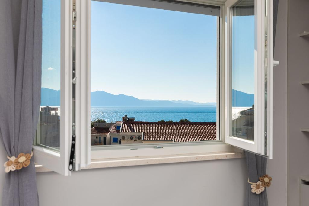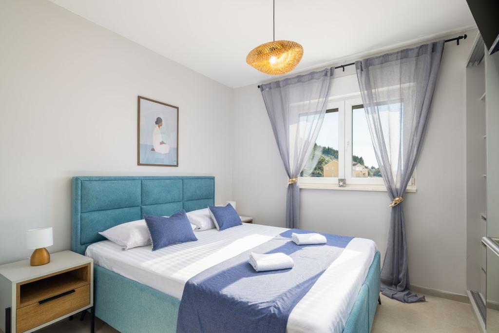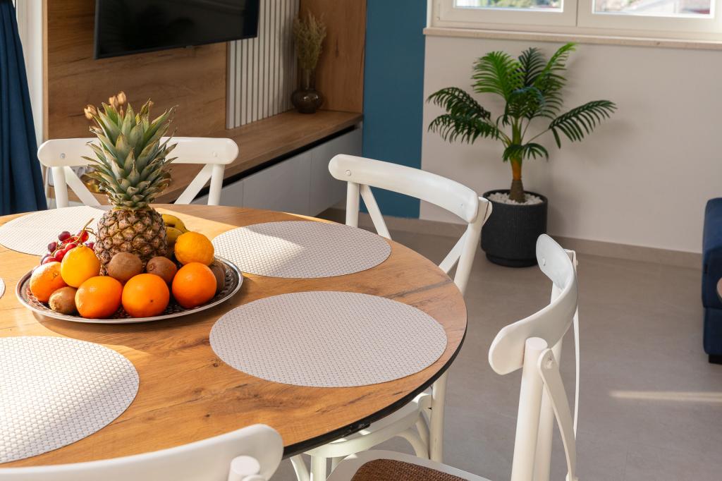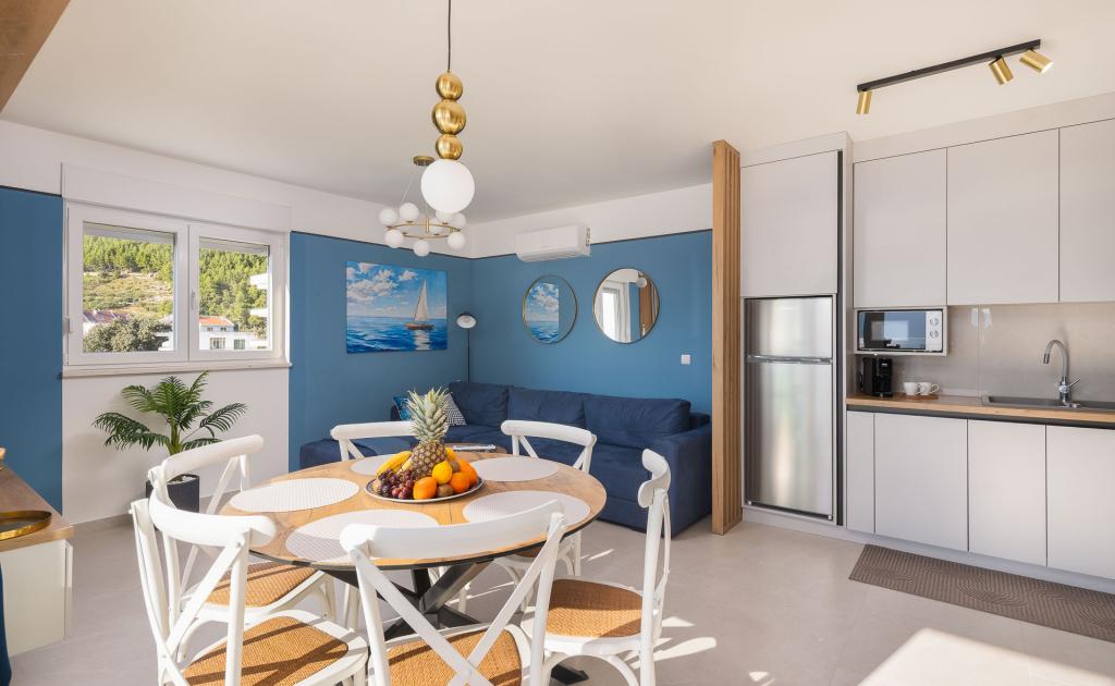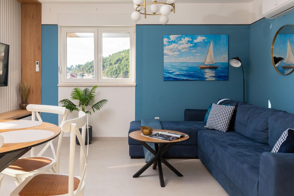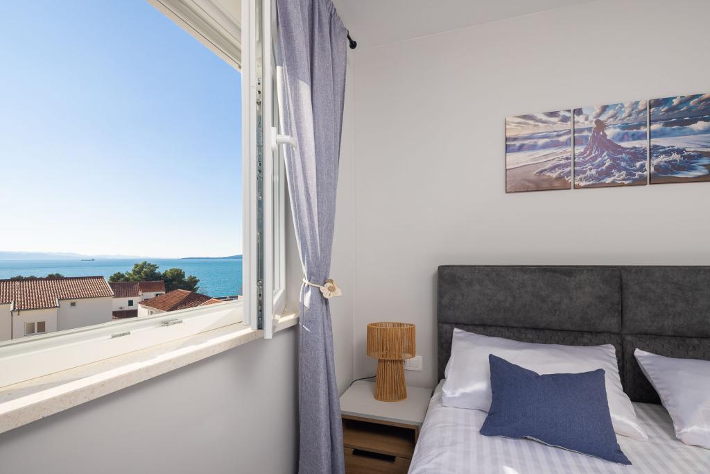 Appartement Zina ligt op slechts 150 meter van het strand in Drvenik en biedt moderne en comfortabele accommodatie met een prachtig uitzicht op zee. Het is ideaal voor gezinnen of kleine groepen die op zoek zijn naar een ontspannen vakantie aan zee. Het appartement beschikt over twee slaapkamers, een badkamer met een extra toilet en een woonkamer met een slaapbank. Gasten kunnen genieten van een ruim balkon met uitzicht op zee, evenals voorzieningen zoals een wasmachine en een eigen parkeerplaats in de garage. Ons personeel staat tijdens uw verblijf tot uw beschikking om uw vakantie aangenaam en zorgeloos te maken.