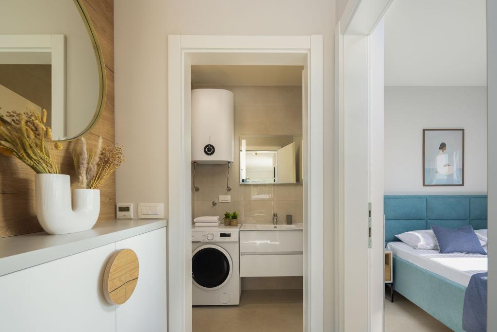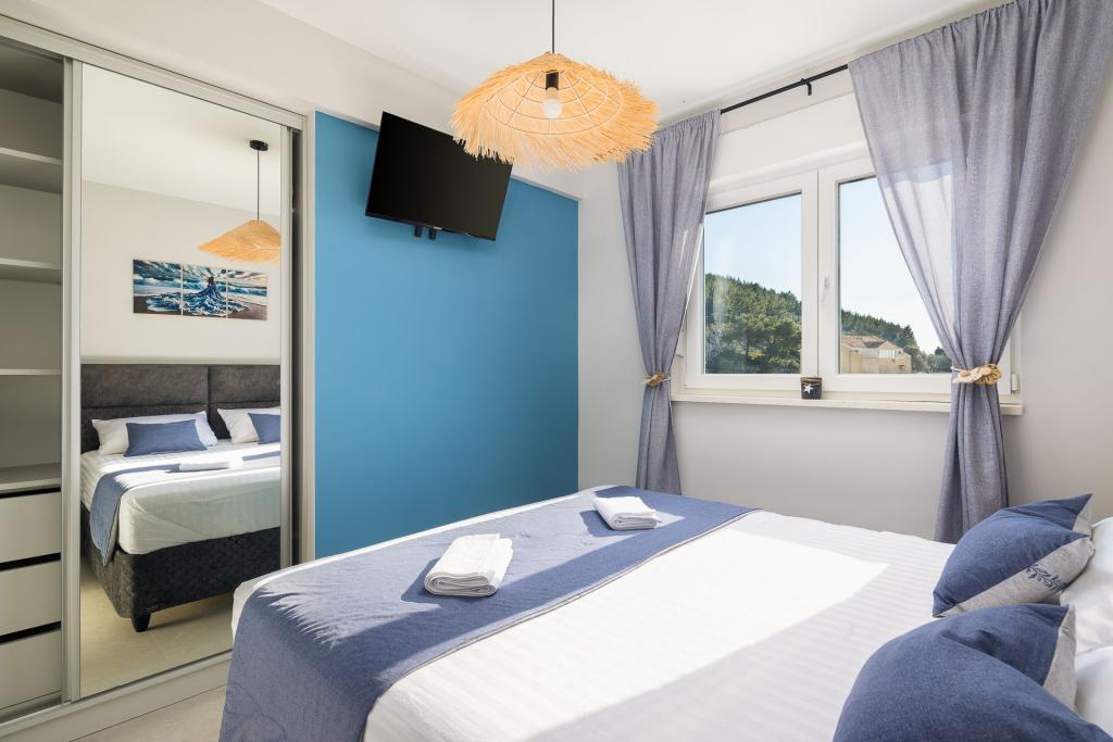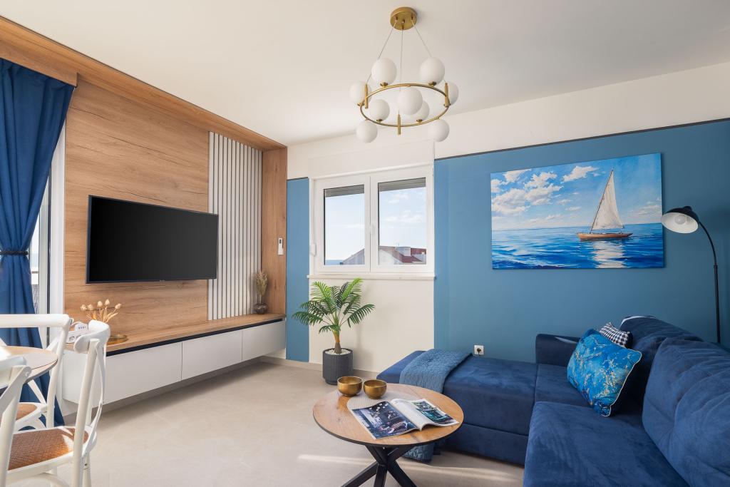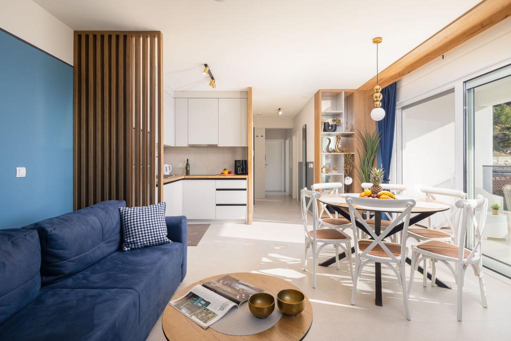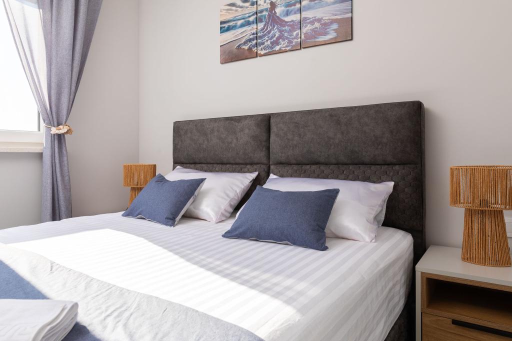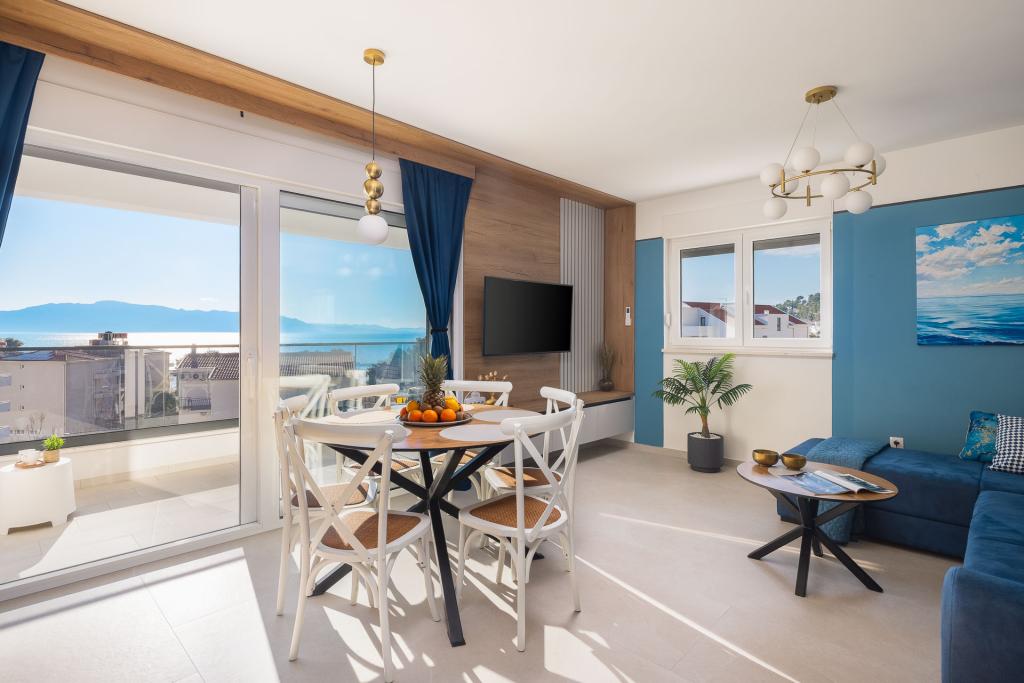 Appartement Zina ligt op slechts 150 meter van het strand in Drvenik en biedt moderne en comfortabele accommodatie met een prachtig uitzicht op zee. Het is ideaal voor gezinnen of kleine groepen die op zoek zijn naar een ontspannen vakantie aan zee. Het appartement beschikt over twee slaapkamers, een badkamer met een extra toilet en een woonkamer met een slaapbank. Gasten kunnen genieten van een ruim balkon met uitzicht op zee, evenals voorzieningen zoals een wasmachine en een eigen parkeerplaats in de garage. Ons personeel staat tijdens uw verblijf tot uw beschikking om uw vakantie aangenaam en zorgeloos te maken.