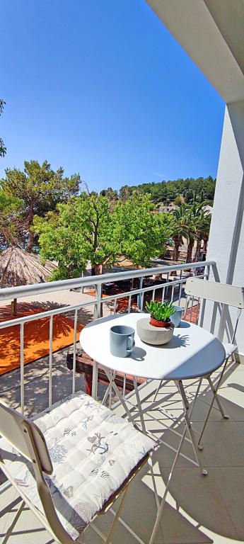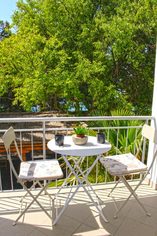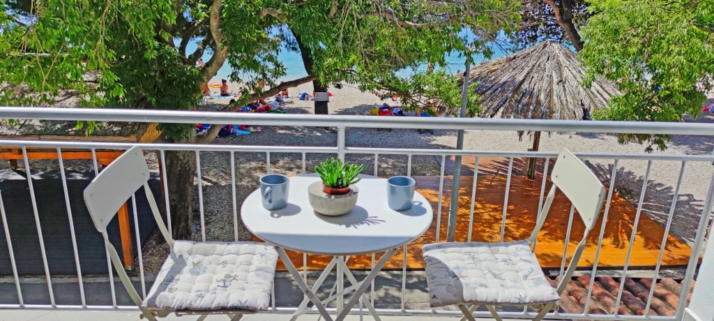 De appartementen bevinden zich in een gezinswoning op de eerste rij aan zee. Het strand ligt op slechts 10 meter van het huis. Het gebouw ligt op 5 minuten lopen van het centrum en op 2 minuten lopen van het restaurant.