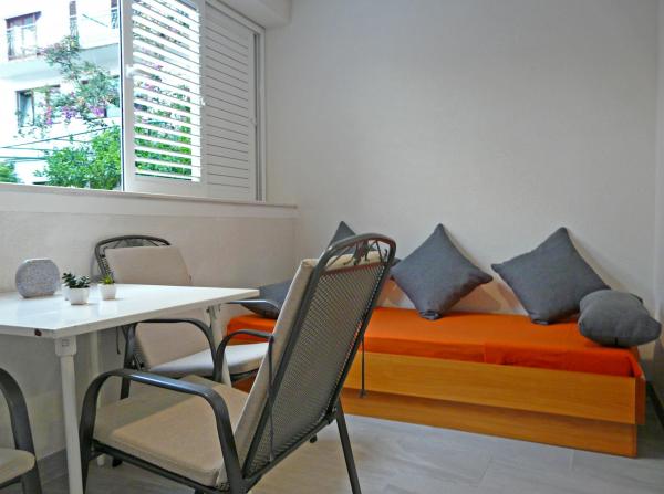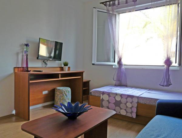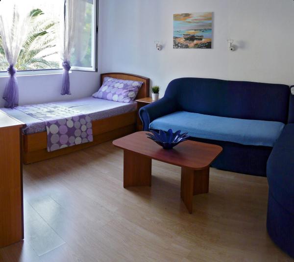 Eengezinswoning met drie moderne appartementen (2 appartementen op de tweede verdieping met een balkon met uitzicht op de zee en 1 begane grond appartement met aparte ingang en parkeerplaats). Het huis is een winkel. Tegenover het huis is een taverne-restaurant. Afstand van de zee, het strand en het centrum is 3 minuten lopen. Gratis wi-fi. Alle appartementen zijn voorzien van airconditioning zonder extra kosten. Parkeren is bij de prijs inbegrepen. Welkom :)