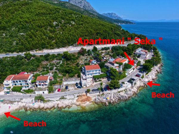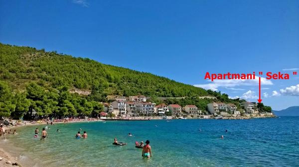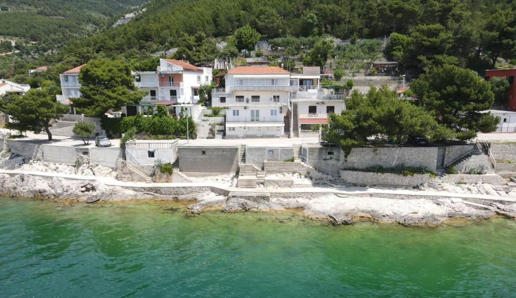 De appartementen zijn gelegen in een rustige buurt van Drvenik. Gelegen eerste rij naar de zee. Er is parkeergelegenheid voor het gebouw. Onder het gebouw is er een betonnen en rotsachtige kust, en een kiezelstrand ligt op 50 meter afstand. Op 100 m zijn er restaurants, cafés, bakkerijen, winkels, wisselkantoor.