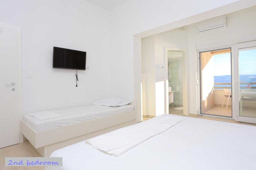 Anna's plaats was prachtig. Net als de foto's. Het balkonuitzicht is geweldig! Het ligt direct aan het water. Recht tegenover het gebouw ligt de aanlegsteiger en aan beide zijden daarvan liggen prachtige zandstranden, met nabijgelegen cafés en ijssalons. We brachten de meeste dagen direct buiten het appartement door met onze 4 kinderen op het strand. Ook 's avonds was het heerlijk om langs het strand te wandelen. Het kan behoorlijk winderig worden, maar in augustus/september was het nooit erg koud. Parkeren was zeer gunstig gelegen op het terrein. We hadden alles wat we nodig hadden. Onze vier kinderen konden alle vier op de uitgetrokken bank slapen. Het enige nadeel is dat er geen handdoeken aanwezig waren en geen wasmachine. Maar het lijkt erop dat het een heel nieuw gebouw is met veel gerenoveerde appartementen, dus hopelijk kunnen deze dingen binnenkort worden toegevoegd. De gastheer reageerde snel op al mijn vervelende vragen. Bedankt voor een heerlijk verblijf op een prachtige plek Gordana! We raden deze plek ten zeerste aan en zouden graag elk jaar terugkomen!